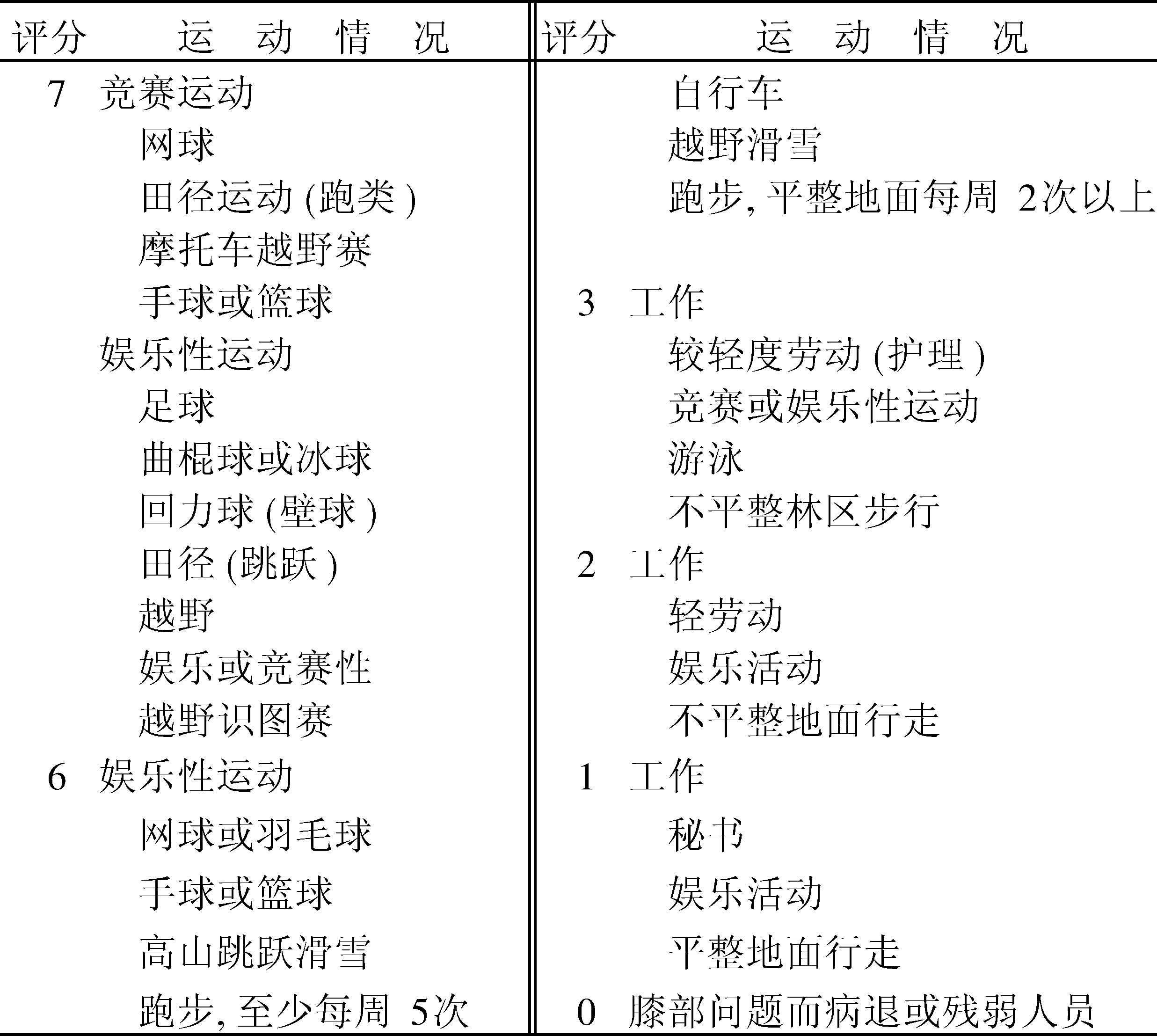 释义 | 膝关节运动评分 膝关节运动评分scoring of motor function of knee joint对膝关节韧带损伤所造成的功能受损及恢复水平,Lysholm等提出了评估标准,即Lysholm膝关节评分法(kndd score scale)。此后Tegner等又根据WHO所公布的有关残疾定级的原则,对膝关节损伤所造成的残损、残弱和残障提出了评估标准,并于1985年和Lysholm共同制定了运动和日常活动能力的评级法,即Tegner运动评级法(activity scale)。这两项评估标准在临床上已广泛应用。 Tegner运动评级标准 ☚ 膝关节评分 骨性关节炎的分级 ☛ |