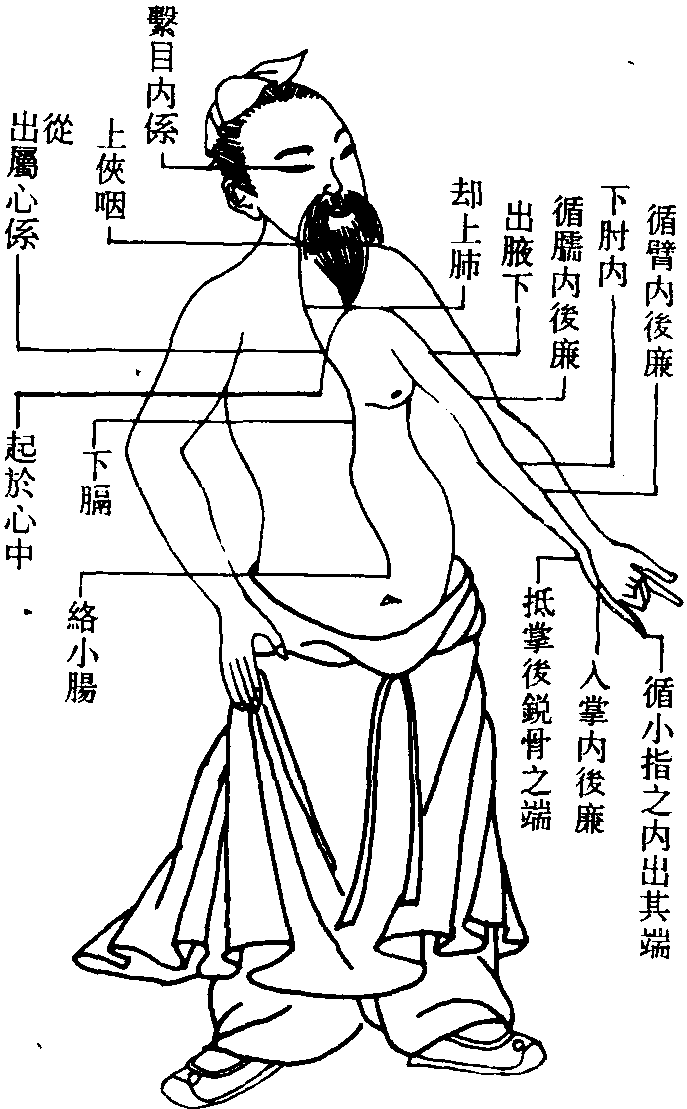 亦稱“心手少陰之脈”、“手少陰”、“手少陰心經”。經脈名。爲十二經脈之一。其循行路綫,起於心中,出屬心系,下横膈,絡小腸。其支脈,從心系上夾咽,繫目系。其直行脈從心系上行於肺,出於腋下,沿上肢掌面内側至掌後鋭骨,入掌中,至小指末端橈側。其主要病候爲掌心發熱,臂肘攣急,腋腫,胸脅滿悶,心悸,面赤目黄,心煩心痛,掌中熱。始見於秦漢典籍。參閲《馬王堆漢墓帛書·足臂十一脈灸經、陰陽十一脈灸經甲本》、《靈樞經·經脈》、《針灸集成》。