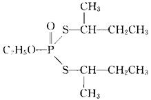 化学名称:S,S-二仲丁基-O-乙基二硫代磷酸酯。化学结构式如下。