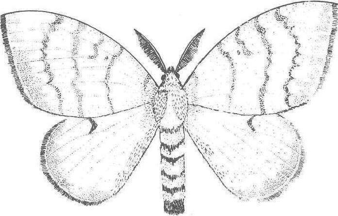 习性 一年发生1代。以完成胚胎发育的幼虫在卵内越冬。在辽宁省每年4月下旬到5月上、中旬陆续孵化。1、2龄幼虫能吐丝下垂借助风力顺风转移,从柞蚕场四周传入场内,或从一个柞蚕场传入另一个柞蚕场。5、6龄幼虫爬行迁移能力较强,当柞蚕场内或场外树叶吃光后,能爬出或爬入柞蚕场取食。各龄幼虫又能在柞蚕场内换树转移。幼虫白天下树藏于落叶中,傍晚上树取食,啃食嫩芽取食叶片。温度低于10℃时,幼虫在柞林停止活动,15℃以下活动较差,取食减少,生长缓慢;25℃以上生长较快。幼虫一般5龄(雄),或6龄(雌),有时出现7龄幼虫(图2 到6月 图2 舞毒蛾幼虫 开始在柞树上、落叶中或石块下化蛹,以7月上、中旬化蛹为多。6月底开始羽化,7月中下旬为羽化盛期。成虫有趋光性,羽化当天能交尾。卵产在树上、墙壁、石块等物体的背光处。一头雌蛾一般产一个卵块,少数产2个卵块,卵块上覆黄褐色绒毛。每个卵块有300~1250个卵粒。分布为害 舞毒蛾分布于中国黑龙江、吉林、辽宁、内蒙古、山东、山西、陕西、河南、河北、湖北、湖南、四川、贵州等省区。以中国北方柞蚕区受害较重。舞毒蛾幼虫大量摄食柞树叶片、嫩芽、嫩梢。1974~1976年辽宁省南部和东南部舞毒蛾大发生,有126万亩柞蚕场受到严重为害而不能养蚕,部分柞蚕场柞叶被舞毒蛾幼虫吃光,使柞蚕生产遭受不同程度的损失。有的柞蚕场因树叶严重受害,柞蚕饥饿大量死亡,由于剩下蚕数过少而被迫停放;有的柞蚕场虽然尚剩蚕数较多,但是收集的春蚕茧,皮薄质差、重量轻,不能作秋蚕用种。 天敌 国内外记载有200余种。在中国东北已经搜集到扑食性天敌13种,寄生性天敌26种。在辽宁省柞蚕区舞毒蛾的主要天敌有粗状六索线虫、舞毒蛾核型多角体病毒及质型病毒、舞毒蛾黑瘤姬蜂,四星埋葬虫、古毒蛾追寄蝇、毒蛾蜉寄蝇、皮蠹、梳胫饰腹寄蝇、柞蚕饰腹寄蝇、麻雀、杜鹃、大山雀等。 防治 卵期刮除卵块。成虫期用黑光灯诱杀,能消灭大量抱卵雌蛾。幼虫3龄前喷洒舞毒蛾核型多角体病毒悬浮液,将病毒虫尸加水稀释成3×66~3×107个多角体/毫升。或于幼虫2~4龄期喷洒50%辛硫磷乳油1,000倍液,80%敌敌畏乳油700倍液。或喷洒2%辛硫磷粉或2%辛敌混合粉,杀虫效果均很好。但在幼虫生长5、6龄期时进行防治,必须提高用药浓度,并且由于柞叶已经受虫为害损失较大,药剂防治必须过了残毒期才能放养柞蚕。 舞毒蛾gypsy mothLymantriadispar L. ,鳞翅目,毒蛾科。分布于黑龙江、吉林、辽宁、内蒙古、陕西、宁夏、江苏、山东、河北、湖南等省区;朝鲜、韩国、日本及欧洲也有分布。雌蛾体长28 mm,前翅黄白色,有褐色弯曲斑纹4条,外缘有黑色纹1列;雄蛾体长约18 mm,前翅灰褐色,有褐色弯曲斑纹。幼虫体色多变:黑、灰、黄色;具暗色纵条,全身毛瘤排成6纵列;末龄幼虫体长50~70 mm,背面前5对毛瘤蓝色,后7对红色。年生1代。幼虫食叶,食性很杂。为世界性大害虫。以刮除卵块;灯光诱杀成虫;喷洒生物或化学农药毒杀幼虫为主要防治措施。 舞毒蛾鳞翅目毒蛾科,又名吉普赛蛾。雌蛾体长25毫米,翅展60—90毫米。触角双栉齿状,较雄者细而长。前后翅灰白色。前翅具有5道横行波纹,外缘黑斑有7个,腹部密生黄褐绒毛。全疆分布,危害林木。 |