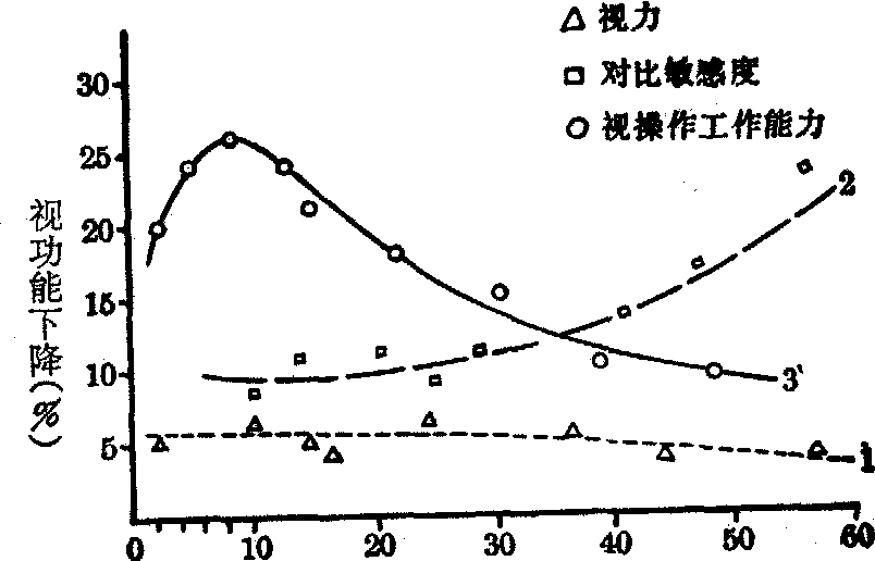 (1)视觉功能变化 (2)操作记忆功能变化 (3)手控跟踪能力变化