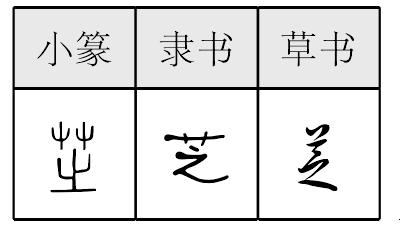 【提示】艹,3画,宋体是一横两竖,楷体第三笔竖改撇; 不要依旧字形写成四笔 (艹)。 *芝zhī6画 艹部 (1) 灵芝,真菌的一种,可供观赏,又可入药,古人以为瑞草。 (2) 白芷(zhǐ),一种香草: ~兰(指芷和兰这两种香草,常比喻德行的高尚或友情、环境的美好)。 芝 ☚ 蓏 莆 ☛ 芝zhī小篆以来的会意兼形声字。从草头,从之,之亦声。《说文》说之字作㞢,象草长出来形。说芝是“神草”。现在叫灵芝。是长在枯树上的一种真菌。菌盖赤褐色,有光泽,可入药。为强壮剂。 芝★常◎常