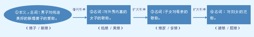 字源解说 良,既是声旁也是形旁,表示纯洁美好。娘,甲骨文 = (良,纯洁美好)+ (女),表示在新婚男子心目中新婚妻子是天下最美好的女子。金文 将甲骨文字形中回廊形状的 写成 。篆文 以“襄” (助理)代“良” ,表示妻子的“贤内助”的家庭角色。造字本义:新婚男子心目中的纯洁美女,即新婚妻子。俗体楷书 回归甲骨文字形结构。 附 文言版《説文解字》:孃:烦擾也。一曰肥大也。从女,襄聲。 附 白话版《说文解字》:娘,烦扰。另一种说法认为,“孃”是“肥大”的意思。字形采用“女”作边旁,采用“襄”作声旁。 引申线索