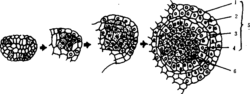 1. 表皮 2. 药室内壁 3. 中层4. 绒毡层