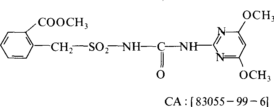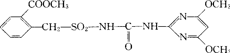 释义 | 苄嘧磺隆bensulfuron-methyl稻田用选择性内吸传导型磺酰脲类除草剂。又称农得时,Londax。化学结构式: 性能 原药有效成分含量大于96%,为白黄色无臭固体,熔点185~188℃,蒸气压为1.73×10-3帕(20℃)。在20℃时,溶剂中溶解度(毫克/升):二氯甲烷中1172、乙腈中538、乙酸乙酯中166、丙酮中138。在微碱性溶液(pH8)中特别稳定,在酸性水溶液中缓慢分解。低毒。原药大鼠急性经口LD50>5000毫克/千克,兔急性经皮LD50>2000毫克/千克,大鼠急性吸入LD50>7.5毫克/升。大鼠90天饲喂无作用剂量为1500毫克/千克。在试验条件下对动物未发现致畸、致突变和致癌作用。鲤鱼(48小时)、虹鳟鱼(96小时)、水蚤(48小时)的LC50分别大于1000、150和100毫克/升。绿头鸭经口LD50>2510毫克/千克。蜜蜂5%死亡率剂量>12.5微克/只。有效成分可在水中迅速扩散,被杂草根和叶部吸收,并传导至各部分。阻碍赖氨酸、亮氨酸及异亮氨酸的生物合成,进而使细胞分裂和生长受到抑制,使叶部和根部停止生长并坏死。进入水稻体内的农得时被代谢成无毒的惰性化合物,因而具选择性。 应用 适用于水稻插秧田和直播田防治阔叶杂草及莎草科杂草,如鸭舌草、眼子菜、节节菜、陌上菜、牛毛草、异型莎草、水莎草、碎米莎草和萤蔺等。高剂量下对稗草有抑制作用。插秧后5~10天,每公顷用10%可湿性粉剂200~300克,拌细潮土300千克/公顷,田间水层3~5厘米,均匀撒施。保水5~7天。直播稻在播前至播后3周内均可用药,但以早期处理为好。剂量及水层管理同插秧田。可与一些除稗剂(丁草胺、乙氧氟草醚、禾草特等)混用,以扩大杀草谱。 苄嘧磺隆bensulfuronme-thyl又称苄磺隆、农得时、稻无草。磺酰脲类内吸、选择性、超高效除草剂。化学名称:2-{〔(4,6-二甲氧基嘧啶-2-基)氨基羰基氨基〕磺酰基甲基}苯甲酸甲酯。化学结构式如下。原药为白色略带浅黄色无臭结晶体,熔点185~188℃。20℃时蒸汽压为173.3×10-5 Pa。微溶于丙酮、甲醇、二氯甲烷等有机溶剂及中性或微碱性水中;在pH8水溶液中稳定,在酸性水溶液中缓慢降解。能被杂草的根和叶片吸收,并传导到各部分,阻碍赖氨酸、异亮氨酸的生物合成,抑制细胞的分裂和生长而死亡。对水稻安全,适用于水稻田和直播田,防除鸭舌草、眼子菜、节节菜、牛毛草、异型莎草、萤蔺、碎米莎草等阔叶杂草和莎草科杂草。高剂量时对稗草有一定的抑制作用。水稻移栽前至移栽后5~7天使用,使用量20~30 g/hm2(有效成分);直播田、秧田播前至播后3周内用药。对人、畜低毒,大鼠急性口服LD50>5 000mg/kg,兔急性经皮LD50>2 000 mg/kg,大鼠急性吸入LC50>7.5 mg/L。对鱼类、鸟类低毒。 |