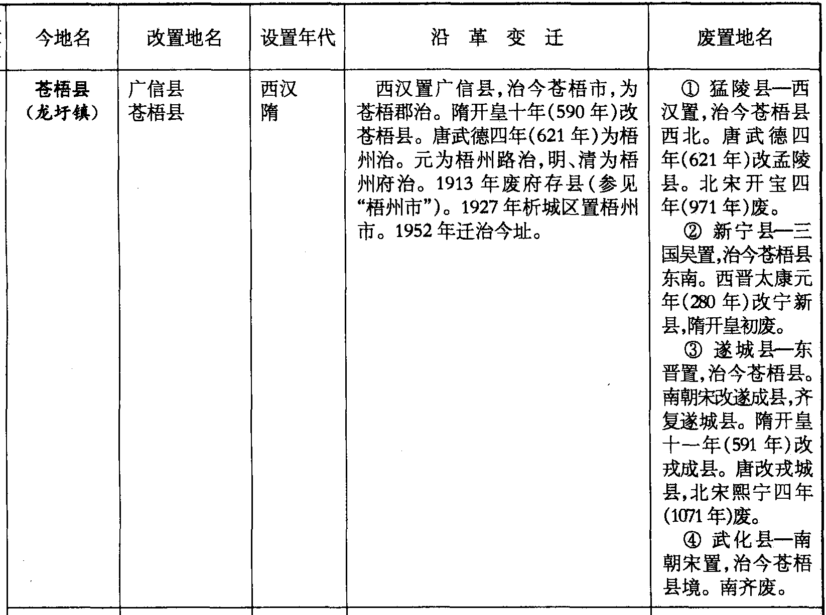 ❸ 遂城县—东晋置,治今苍梧县。南朝宋改遂成县,齐复遂城县。隋开皇十一年(591年)改戎成县。唐改戎城县,北宋熙宁四年(1071年)废。