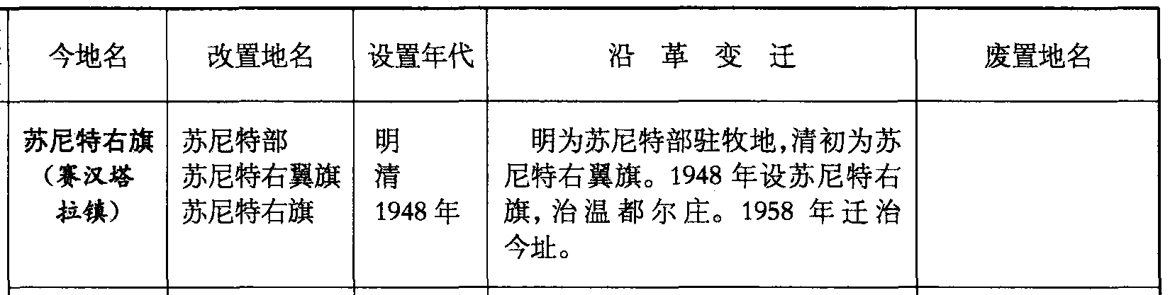 苏尼特右旗(赛汉塔拉镇)苏尼特部苏尼特右翼旗苏尼特右旗明清1948年明为苏尼特部驻牧地,清初为苏尼特右翼旗。1948年设苏尼特右旗,治温都尔庄。1958年迁治今址。