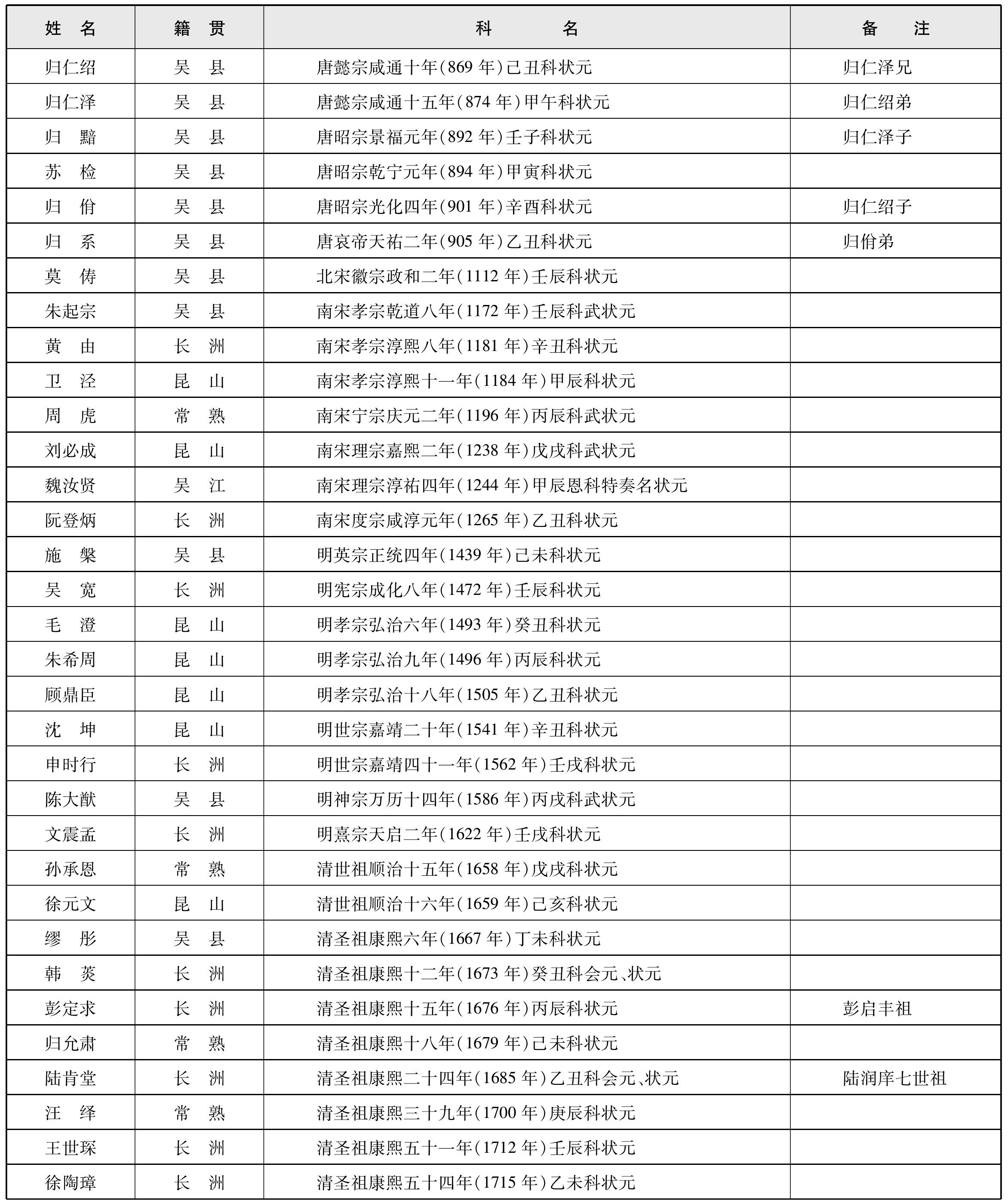 字词 | 苏州历代人物大辞典︱附录五 苏州地区历代状元表 | |