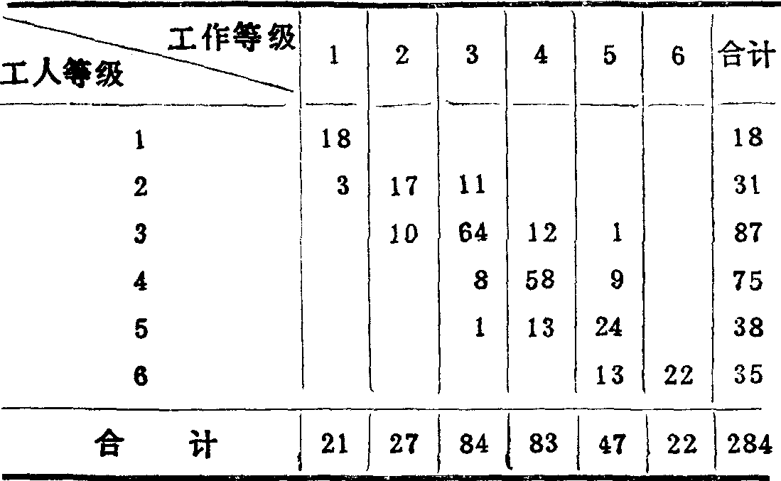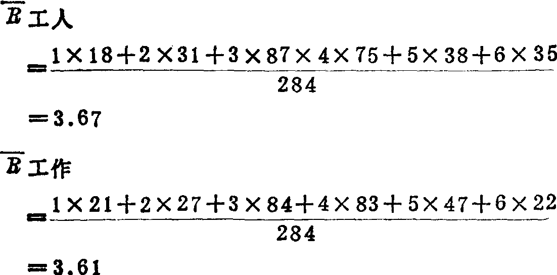 苏联建筑业职工构成统计对建筑业职工状况进行静态描述。苏联建筑业统计根据不同的经济任务,对建筑单位的职工构成从不同的方面进行统计研究。其中最重要的是按职工工作的工段和按职工所执行的生产职能以及按工人的熟练程度对职工构成进行统计分析。 按生产工段的不同,建筑单位全部工作人员可分为三类:(1)在基本生产中就业的职工。即直接或间接在建筑生产中就业的全部职工。包括从事建筑安装工作的工人、建筑单位机关工作人员、从事建筑机械管理和服务的职工等。(2)在辅助生产中就业的职工。指在组织上独立、但没有独立的资产负债表并生产工业性产品的辅助性生产单位(采石场、灰浆厂等)的职工。(3)在服务事业中就业的职工。指各种生产性服务业(运输办公室、配套处、设计预算组等)的职工和非生产性服务业(公用事业、门诊部、俱乐部等)的职工。 按所执行的生产职能的不同,建筑单位的全体人员可分为五类:(1)从事制造产品的工人;(2)从事工艺过程的准备和监督、领导生产和完成其他需要专门技术经济知识的职能的工程技术人员; (3)担负公文处理、核算和供应等职能的服务人员;(4)从事清扫、室内供暖等工作的低级服务人员;(5)从事建筑工地警卫和防火的保卫人员。 在上述各类人员中,建筑业统计特别注重对工人人数及构成的统计分析,因为他们人数最多,在建筑业中起的作用最大。据统计,苏联1983年在建筑业中的工人人数占建筑业总人数的78.3%。关于各种人员构成的原始资料,一般可从统计机关定期进行(苏联规定每5年进行2次)的一次性调查结果中得到。 按工人的职业和熟练程度对工人的构成进行统计分析对于制定建筑单位的计划,研究建筑单位的工作条件具有重要意义。工人熟练程度的一般水平可根据工资等级按下面的公式进行计算:  式中:——表明一般熟练程度的平均工资等级; R——工资等级; n——该等级的工人人数。 将工人的熟练程度与他们所担负的工作进行比较,可以负的工作,必须用工人总人数进行加权平均计算。例如,某单位工人按熟练程度和按工作等级分配如下表: