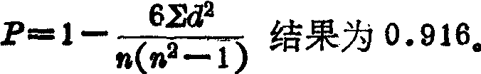 计算结果表明,该单位工人平均熟练程度高于他们所担负工作的平均复杂程度。从表中的数据还可以看出,担负工作的复杂程度高于工人熟练程度的工人所占的比重为: 担负工作的复杂程度低于工人熟练程度的工人所占比重为: 二者相符的人数所占比重为: 工人熟练程度和所担负工作复杂程度的总适应程度可由等级相关系数表示,上例中这一系数按斯皮尔明公式计算: 式中:d——工人熟练程度与其担负工作复杂程度之差; n——标志的对数。 |