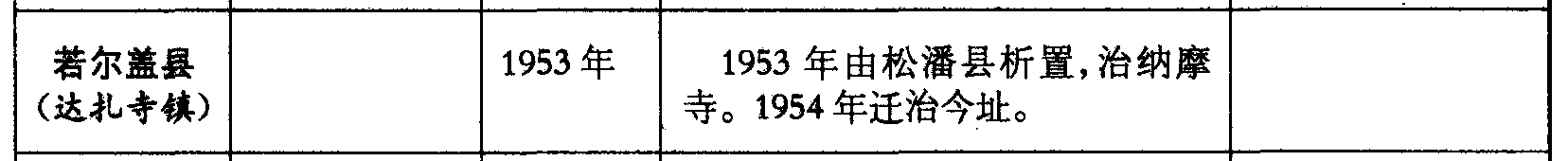 若尔盖县(达扎寺镇)1953年1953年由松潘县析置,治纳摩寺。1954年迁治今址。