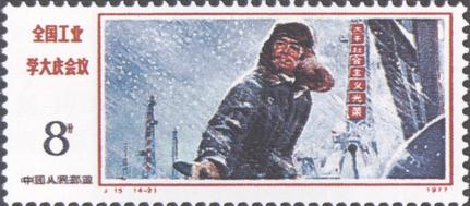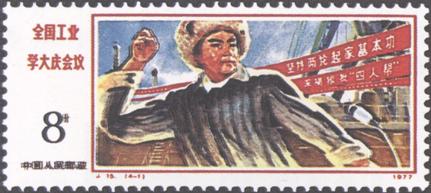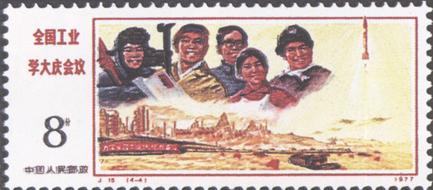 释义 | 全国工业学大庆会议 发行日期:1977年4月25日 齿孔度数: 印刷版别:影写版 票幅:60×27 全张枚数:35(5×7) 设计者:张克让 李印清 印刷:北京邮票厂 (1)8分 大批修正主义 700万枚 (2)8分 大干社会主义 700万枚 (3)8分 普及大庆式企业 700万枚 (4)8分 前程似锦 700万枚 (1)-(4) 4枚全 |
