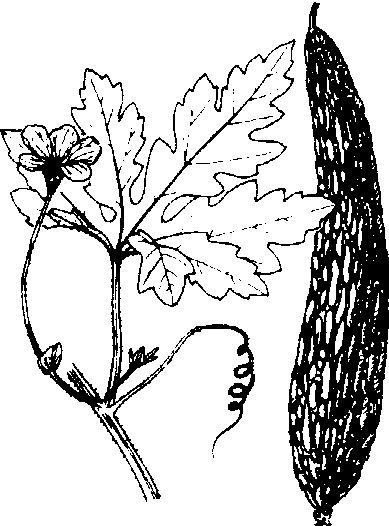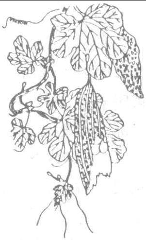 释义 | 苦瓜朱若极,清湖广全州人。见“大涤子”条。 苦瓜k‘ u53 kua44蔬菜,多凉拌,清热解毒。比喻悲苦的命运: 苦树上结的~。 苦瓜受到老师批评;倒了霉。 苦瓜受到老师批评;倒了霉。 古代名物 > 穀蔬類 > 蔬部 > 瓜瓠 > 苦瓜 苦瓜 kǔguā 亦稱“錦荔枝”、“癩蒲萄”。葫蘆科一年生草本植物。葉绿,花黄,果實圓筩形,嫩時可作蔬菜,熟後可生食。明·李時珍《本草綱目·菜三·苦瓜》:“〔釋名〕 錦荔枝、癩蒲萄。〔集解〕時珍曰:‘苦瓜原出南番,今閩廣皆種之。五月下子,生苗引蔓,莖葉卷鬚,並如蒲萄而小。七八月開小黄花,五瓣如碗形。結瓜長者凹五寸,短者二三寸,青色,皮上痱㿔如癩及荔枝殼狀,熟則黄色自裂,内有紅瓤裹子,瓤味甘可食。’”清·劉獻廷《廣陽雜記》卷三:“衡州苦瓜,即北方之癩葡萄,江南之錦荔枝也。閩廣滇黔人皆喜食,味甚苦,非虚寒所宜也。”參閱清·吳其濬《植物名實圖考·蔬類·苦瓜》。 苦瓜 古代名物 > 醫藥類(下) > 蔬實部 > 果 > 苦瓜 苦瓜 kǔguā 亦稱“錦荔枝”、“癩葡萄”。葫蘆科植物苦瓜的果實。其瓜味苦,故名。其莖、葉皆似野葡萄,實長四五寸,皮上痱㿔如荔枝殼狀,故有異名。成熟的苦瓜皺縮,彎曲,果皮黄色,粗糙,内有紅瓤。主治熱病煩渴,惡瘡,牙疼,胃痛。明·蘭茂《滇南本草·苦瓜》:“治丹火毒氣,療惡瘡結毒,或遍身已成芝麻疔瘡疼難忍。”明·李時珍《本草綱目·菜三·苦瓜》:“〔釋名〕錦荔枝,癩葡萄”。 苦瓜【同义】总目录 苦瓜锦荔枝癞瓜癞葡萄 瓜 瓜瓜(菜~;丝~;西~;甜~;金~;冬~;顶~) 土芝 ☚ 荤菜 果实 ☛ 苦瓜balsam pear; bitter gourd葫芦科(Cucurbitaceae)苦瓜属中的栽培种,一年生攀缘性草本植物。学名Momordica charantia L.,别名凉瓜,古名锦荔枝、癞葡萄。染色体数2n=2x=22。每100克嫩果含水分约94克、蛋白质0.7~1.0克、碳水化合物2.6~3.5克、维生素C56~84毫克。嫩果中糖甙含量高,味苦。随着果实成熟,糖甙被分解,苦味变淡。多食用嫩果,印度和东南亚人食用嫩梢和叶,印度尼西亚和菲律宾还取花食用。 苦 瓜 生长发育和果实形成 苦瓜整个生育过程约需100~200天,种子发芽和幼苗生长慢,开花结果期占整个生育期的一半,开花结果的同时进行旺盛的茎叶生长,占总生长量的95%以上。主蔓一般在第4~6节发生雄花,并可连续发生。第一雌花多在第8~14节或更高节位发生,第一个雌花发生后每隔3~6节发生一个雌花,偶有连续发生雌花的。侧蔓一般在第一节后连续着生雄花,其后才发生雌花。低节位的雌花结果率较高。 苦瓜发芽需要30~35℃的温度,幼苗生长适温20~25℃,15℃以下生长缓慢,10℃以下生长不良。开花结果期间能忍受30℃以上较高温度。在25~30℃和良好的日照条件下,座果率高,果实发育迅速,苦瓜属于短日照植物。 栽培技术 多在春夏季栽培,播种季节由南至北,从2月至4月顺次延迟。华南和台湾等省还可秋季栽培。畦形和支架见丝瓜。 生长初期需压蔓,促发不定根,扩大根系的吸收能力。苦瓜侧蔓多,应摘除迟发生雌花的侧蔓,减少荫蔽,使养分集中结果。 苦瓜较耐肥,耐旱,不耐涝。栽种前施足基肥,苗期适当追肥,促茎叶生长。开花结果后持续供肥。苦瓜的果实发育快,花后10~12天达商品成熟,应及时采收。生长期间注意灌溉,保持土壤湿度。雨天及时排水。果实顶部由绿转黄,表示进入生理成熟,可留种。经后熟、剖瓜取种、洗净阴干,在通风处贮藏。 苦瓜balsam pearMomordica charantia L.,又称凉瓜。古称锦荔枝、癞葡萄。葫芦科,苦瓜属。一年生蔓性草本。2n=2x=22。原产亚洲热带地区;中国南部栽培较多。叶掌状深裂。花黄色。果纺锤形或圆锥形,表面有瘤状突起;成熟果皮及果肉橙黄色;有特殊苦味;瓤鲜红色,味甜。喜温暖,较耐高温。一般春播夏收。搭架栽培。未熟果作菜用,成熟果瓤可生食。有清热祛暑、降血糖的药效。 苦瓜葫芦科苦瓜属一年生攀援草本植物。原产于亚洲热带。根系分布于地表30 cm的土层,侧根分布直径在1 m以上。茎蔓生,5棱。掌状叶深裂。花单性,雌雄异花同株。雄花萼片5枚、花瓣5片。浆果,每果含种子20~30粒,种子千粒重150~180 g。嫩果每百克鲜重含维生素C56~84 mg。染色体数2n=22。生长适温20~30℃。生育期100~200d。按果实形态分长圆锥形和短圆锥形2类。 苦瓜 苦瓜Momordicacharantia俗称“锦荔枝”、“癞葡萄”。双子叶植物,葫芦科。原产印度尼西亚的一年生攀援状草本。困果实表面有瘤状突起,故又俗称“癞葡萄”。成熟是黄赤色,果肉鲜红色,有苦味;瓤鲜红色,味甜。优良品种“大项苦瓜”,瓜大肉厚,苦中有甜;“消身苦瓜”的表面较为光滑,肉质细嫩。苦瓜中的营养丰富,维生素B、C含量较多,虽有苦味,但无毒。嫩果作蔬菜,切断后先用盐腌片刻,即可大除苦味。成熟果瓤可鲜食,有清火明目、解劳乏、除邪热和益气壮阳的功效。我国广东、广西等地栽培较多,喜以苦瓜做成凉茶饮用,可解表除暑。 ☚ 韭菜 佛手瓜 ☛ 苦瓜kǔ guā《本草纲目》菜部第28卷苦瓜(1)。药名。 苦瓜balsam pear;bitter gourd 苦瓜balsam pear;biter cucumber |
