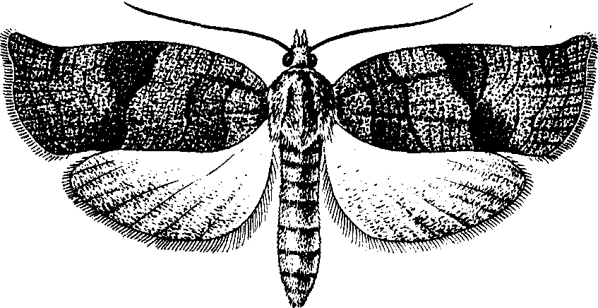 释义 | 苹果卷叶蛾apple leaf roller苹果等果树的卷叶害虫。又名黄色卷蛾,苹大卷叶蛾。学名Choristoneura longicellana (Walsingham)。鳞翅目,卷蛾科。已知于朝鲜、日本、苏联(西伯利亚)及中国黑龙江、吉林、辽宁、山东、河北、河南、安徽、江苏、湖北、陕西等省均有分布。幼虫为害苹果、梨、桃、樱桃、柿、杏、山楂、核桃、鼠李、栎、山槐、柳等。成虫体黄褐或暗褐色。雄虫翅展19~24毫米,头部有淡黄褐色鳞毛,前翅近四方形,前缘褶大,缺基段,全翅呈淡黄褐色,有深色基斑和中带,在近基部后缘有一黑斑,中室占全翅长的4/5。雌虫翅展23~24毫米,前翅呈长方形,前缘凸出,近顶角处凹陷,顶角突出,中室占全翅长的2/3~3/4,后翅灰褐,顶角黄色。卵扁椭圆形,初产时为黄绿色,后渐呈淡红褐色,卵粒聚产排列呈鱼鳞状。末龄幼虫长23~25毫米,黄绿色,体有细长刚毛,头、前胸背板及胸足黄褐色,前胸背板后缘黑褐色,近中线两侧各有一明显的深褐色斑,头壳上有栗棕或褐色斑,侧后部斑纹明显呈“山”形。蛹体长10~13毫米,红褐或深褐色,胸部背面黑褐色,尾端有8个钩状刺毛(见图)。 苹果卷叶蛾 |