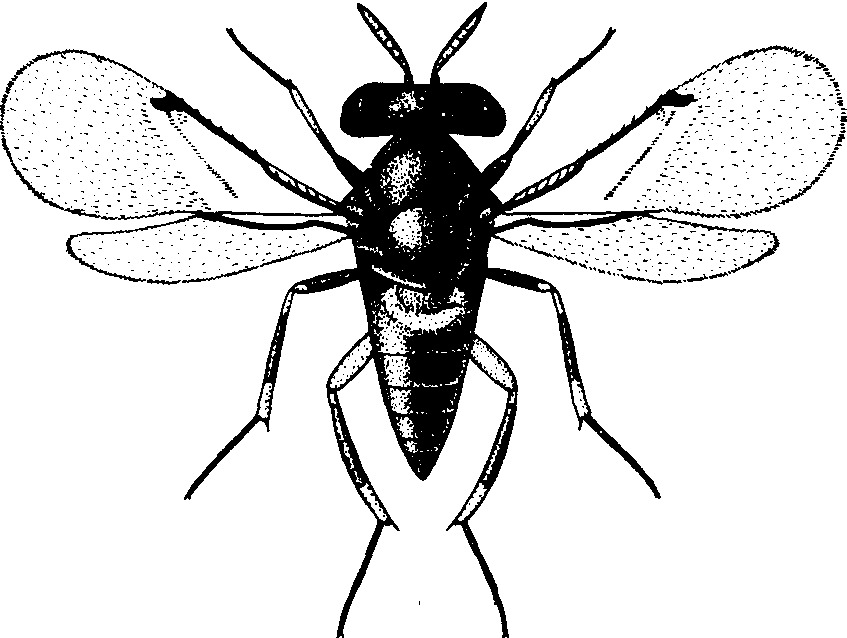 释义 | 苹果绵蚜蚜小蜂woolly aphid parasite苹果绵蚜的重要寄生性天敌昆虫,别名日光蜂。学名Aphelinus mali (Haldeman)。膜翅目,蚜小蜂科。广布欧、美等40多个国家,对苹果绵蚜有显著的抑制作用。中国山东青岛、烟台和辽南果区,曾作过繁殖利用研究,在生产上取得显著效果。 苹果绵蚜小蜂 生活习性 一年发生9~12代,最多可达13代。辽宁南部、山东东部均以末龄幼虫在寄主体内越冬。翌年3月下旬气温达6~7℃时开始化蛹,4月中旬气温达11℃时为化蛹盛期,4月下旬平均气温达12~14℃时为羽化盛期。越冬代发育历期最长,一般需184天,最长达240天;第一代约需一个月,夏季最短仅需7天即可完成一代。发育的适宜温度为22~27℃,相对湿度80~90%,均较绵蚜要求的温、湿度为高。雌蜂常多于雄蜂,特别是6、7月间,雌雄比最高可达7:1。成虫寿命和产卵量与气温的高低关系密切,据青岛室内观察,每雌最多可产卵108粒。寄主以苹果绵蚜为主,还可寄生苹果蚜、菜蚜和蔷薇长管蚜。 繁殖利用 由于本地蜂种生长、发育和繁殖要求的温度较苹果绵蚜为高,在自然情况下不能全年有效地控制绵蚜的为害。青岛果区曾引进苏联蜂种品系,与当地蜂种进行种内远缘杂交,苏联蜂种及杂交后代生活力强、田间寄生率高,能控制苹果绵蚜的猖獗为害。 可于8月上中旬,选用5、6年生苹果树,罩以养虫笼。先清除树上原有的寄生和捕食性天敌,然后引入健康的苹果绵蚜,待其繁殖至一定数量后,将苹果绵蚜蚜小蜂引入笼内,任其寄生繁殖。冬季封冻前,将附被寄生绵蚜的枝条剪下,悬挂在通风处,翌年春天再移挂到绵蚜发生严重的苹果树上。4 月上中旬,若绵蚜尚未出现,可将枝条保存阴凉处,或冷藏于4℃的冰箱中,以延迟寄生蜂羽化。 |