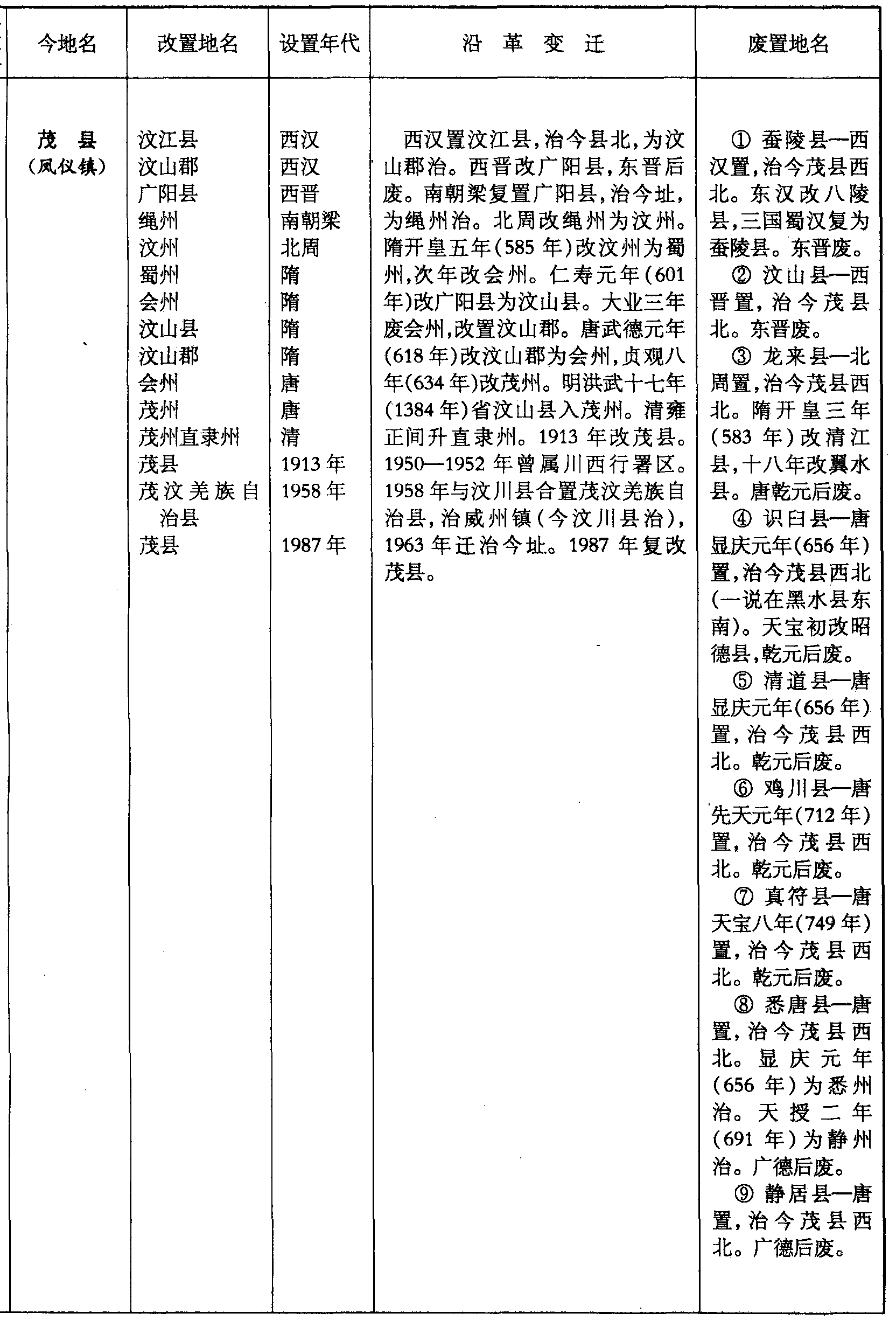❼ 真符县—唐天宝八年(749年)置,治今茂县西北。乾元后废。