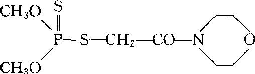 内吸有机磷杀虫、杀螨剂。化学名称:O,O-二甲基S-〔2(4-吗啉基)-2-氧代乙基〕二硫代磷酸酯。化学结构式如下。无色结晶,有特殊臭味,熔点63~64℃,水中溶解度为0.5%,可溶于醇类、苯,易溶于丙酮、氯仿、乙腈等。对刺吸式口器害虫和螨类具有内吸和触杀作用。主要用于防治蚜、螨、蚧、木虱、叶蝉及蓟马等。大鼠急性口服LD50为190 mg/kg,急性经皮LD50为238 mg/kg。