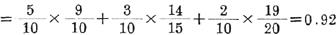 指以各分事件的概率为权数的加权平均概率。 设事件B只能与有限个两两互斥事件A1,A2,……An之一同时出现,即有 B=B(A1+A2+……+An)=BA1+BA2+……+BAn 且 P(Ai)>0(i=1,2,……,n) 则全概率公式为: P(B)=P(A1)P(B|A1)+P(A2)P(B|A2)+……+P(An)P(B|An)  全概率是通过把复杂事件分解为简单事件来求解概率问题。这里事件B的概率是BA1+BA2+……+BAn各分事件的概率和。如某仓库中有十箱同规格产品,这十箱中依次有五箱、三箱、二箱是甲厂、乙厂、丙厂所产,该三厂的次品率依次为1/10,1/15,1/20。 从这十箱中任取一箱,再从中任取一件产品,求取得正品的概率。 按全概率公式计算为: P(B)=P(A1)P(B|A1)+P(A2)P(B|A2)+P(A3)P(B|A3)