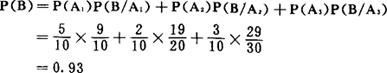 是指各分事件的概率为权数的加权平均概率。 设事件B能且只能与有限个两两互斥事件A1,A2,……An之一同时出现,则B的概率可按全概率公式计算: B=B(A1+A2+……+An)=BA1+BA2+……+BAn 且 P(A1)>0(i=1,2,……,n) 则全概率公式为   当诸P(A1)和P(B/A1)较易计算时,用此公式计算P(B)就较方便。全概率是通过把复杂事件分解为简单事件来求解概率问题。这里事件B的概率是BA1+BA2+……+BAn各分事件的概率和。例如,某仓库中有10箱同规格产品,这10箱中依次有5箱、2箱、3箱是甲厂、乙厂、丙厂所产,该3个厂的次品率依次为 , , 。从这10箱中任取1箱,再从中任取一件产品,求取得正品的概率。 按全概率公式计算为: