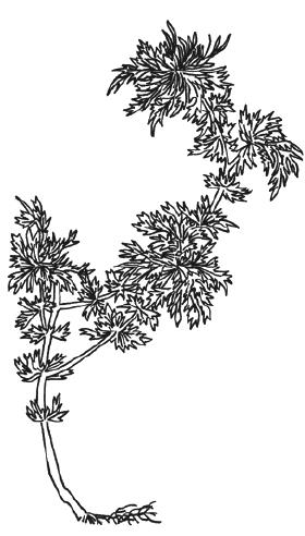古代名物 > 醫藥類(上) > 草部 > 全草 > 因陳 > 茵陳蒿 茵陳蒿 yīnchénhāo 亦作“茵蔯蒿”,亦稱“錦茵蔯”、“山茵蔯”、“角蒿”。即因陳。南朝梁·陶弘景《本草經集注·草木類·茵陳蒿》:“而今茵陳乃云此。”清·張璐《本經逢原·隰草部·茵蔯蒿》:“茵蔯有兩種。一種葉細如青蒿者,名錦茵蔯……一種生子如鈴者,名山茵蔯,又名角蒿。” 茵陈蒿药名。出《神农本草经》。又名茵陈、绵茵陈。为菊科植物茵陈蒿Artemisia capillarisThunb.或猪毛蒿A. scoparia Waldst.et Kit.的嫩苗。主产陕西、山西、安徽。苦、辛,微寒。入肝、胆、脾经。清热利湿,利胆退黄。 ❶治湿热黄疸,胆囊炎,伤暑发热,小便不利。煎服:9~15g。 ❷煎水洗风瘙瘾疹,湿疮。茵陈蒿含蒿属香豆素(Scoparone),α-对羟苯氧基-6-甲氧基-5,7-二羟基色酮,绿原酸,脂肪油,挥发油等;挥发油中含茵陈炔酮(Capillin)、茵陈烯酮(Capillone)、茵陈炔(Capillene)、茵陈素(Capillarin)、丁香油酚、邻苯甲酸、棕榈酸、β-蒎烯等。地上部分还含中国蓟醇、茵陈蒿素A、B等。猪毛蒿含蒿属香豆素,对羟基苯乙酮,脂肪油,挥发油等;挥发油中含α-和β-蒎烯、桉叶素、丁香油酚、侧柏醇、侧柏酮等。地上部分还含紫花牡荆素、蒿黄素等。煎剂或茵陈蒿汤注射液对四氯化碳中毒性肝炎,无论在肝脏的功能或病理形态方面,均有治疗作用。α-对羟苯氧基-6-甲氧基-5,7-二羟基色酮和对羟基苯乙酮均有明显的利胆作用。挥发油在体外有抑菌作用。茵陈炔酮有抗皮肤真菌作用。蒿属香豆素还有某些利尿、降压、增加冠脉流量、镇痛、消炎及平喘作用。其中成分还能增加脑血流量、抗凝、促进纤溶等。水煎剂可降低血清胆甾醇。对小鼠艾氏腹水癌有轻度抑制作用。对人工发热兔有解热作用。 茵陈蒿capillary wormwoodArtemisia capillarisThunb.,菊科,蒿属。多年生草本或半灌木。生于较潮湿的环境中。中国南北各省均有分布;朝鲜半岛、日本、菲律宾也产。茎通常黄棕色,幼时全体密被褐色丝状毛。叶常为二回羽状深裂,裂片细长如发。头状花序极多数;总苞球形,总苞片3~4层;花黄色,缘花6~10,雌性,结实,盘花5~7,不育。瘦果,长圆形,无毛。花果期9~12月。全草含叶酸、挥发油,花和果实含香豆素。早春采全草入药,可治黄疸病,也有利尿、驱虫作用。 茵陈蒿见“冷蒿”。 茵陈蒿yīn chén hāo《本草纲目》草部第15卷茵陈蒿(3)。药名。 【基原】为菊科植物茵陈蒿Artemisia capillaris Thund.的幼嫩茎叶。 【别名】因尘(《吴普本草》),马先(《广雅》),茵陈(《本草经集注》),茵 蒿(《雷公炮炙论》),因陈蒿(《本草拾遗》),绵茵陈(《本经逢源》),绒蒿、细叶青蒿(《广西中兽医药植》),臭蒿、安吕草(《江苏植药志》),婆婆蒿(《山东中药》),野兰蒿(《湖南药物志》)。 【性味】苦辛,凉。 ❶《本经》:“味苦,平。” ❷《别录》:“微寒,无毒。” ❸《药性论》:“味苦辛,有小毒。” ❹《珍珠囊》:“苦甘。” 【归经】入肝、脾、膀胱经。 ❶张元素:“入足太阳经。” ❷《本草经疏》:“足阳明,太阴,太阳经。” ❸《本草再新》:“入肝、肾二经。” 【功用主治】清热利湿。治湿热黄疸,小便不利,风痒疮疥。 ❶《本经》:“主风湿寒热邪气,热结黄疸。” ❷《别录》:“治通身发黄,小便不利,除头热,去伏瘕。” ❸《本草拾遗》:“通关节,去滞热,伤寒用之。” ❹《日华子本草》:“治天行时疾,热狂,头痛头旋,风眼痛,瘴疟,女人癥瘕,并内损乏绝。” ❺《本草蒙筌》:“行滞,止痛,宽膈,化痰。” ❻《医学入门》:“消遍身疮疥。” ❼《医林纂要》:“坚肾,燥脾湿,去郁,解热。” ❽《本草再新》:“泻火,平肝,化痰,止咳发汗,利湿,消肿,疗疮火诸毒。” 【用法用量】内服:煎汤,三至五钱。外用:煎水洗。 茵陈蒿yīnchénhāo中药名。出《神农本草经》。又名茵陈、绵茵陈。为菊科植物茵陈蒿Artemisia capillarisThunb. 或滨蒿A. scopariaWaldst. et Kit. 的嫩苗。主产于陕西、山西、安徽。苦、辛, 微寒。入肝、胆、脾、胃经。清热利湿, 利胆退黄。治湿热黄疸、胆囊炎、伤暑发热、小便不利, 煎服: 6 ~15克。煎水洗治风瘙瘾疹、湿疮。茵陈蒿含蒿属香豆素(Scoparone), α-对羟苯氧基-6-甲氧基-5, 7-二羟基色酮等。煎剂或茵陈蒿注射液对四氯化碳中毒性肝炎的肝功能或病理形态, 均有治疗作用。α-对羟苯氧基-6-甲氧基-5, 7-二羟基色酮有明显的利胆作用。茵陈炔酮在体外有抗皮肤真菌作用。蒿属香豆素尚有利尿、降压、增加冠脉血流量、镇痛、消炎及平喘作用。水煎剂可降低血清胆甾醇。对小鼠艾氏腹水癌有轻度抑制作用。对人工发热兔有解热作用。