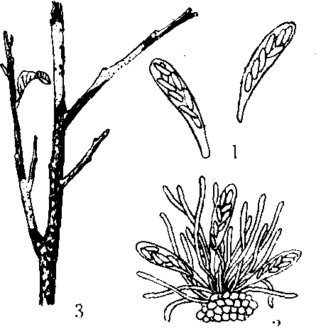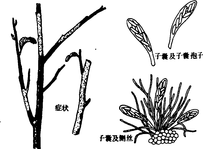 释义 | 茶枝梢黑点病tea shoot blight茶树半木质化新梢病害之一。中国各产茶省均有分布。 茶枝梢黑点病 茶枝梢黑点病tea shoot blight中国各茶区均有分布。在半木质化新梢上出现灰黄色椭圆形斑块,上生有光泽的黑色小点。病原菌Ce-nangium sp.,属柔膜菌目柔膜菌科。子囊盘直径约0.5mm。子囊棍棒形,大小为114~172μm×20~25μm。子囊孢子无色透明,长椭圆形,大小22~42 μm×5~7 μm。以子囊盘或菌丝体在病梢上越冬。翌春形成子囊孢子传播,并侵入新梢。台刈后抽出的新梢上发生较多。可因地制宜选用抗病性强的品系或品种;加强树势管理增强抗性;发生严重茶园可喷洒杀菌剂。 茶枝梢黑点病 1.子囊及子囊孢子 2.子囊及侧丝 3.病状 |