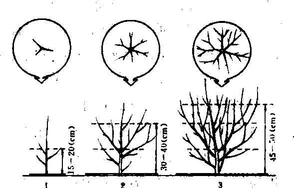 幼年茶树定型修剪标准模式 1.第一次定型修剪 2. 第二次定型修剪 3.第三次定型修剪 |