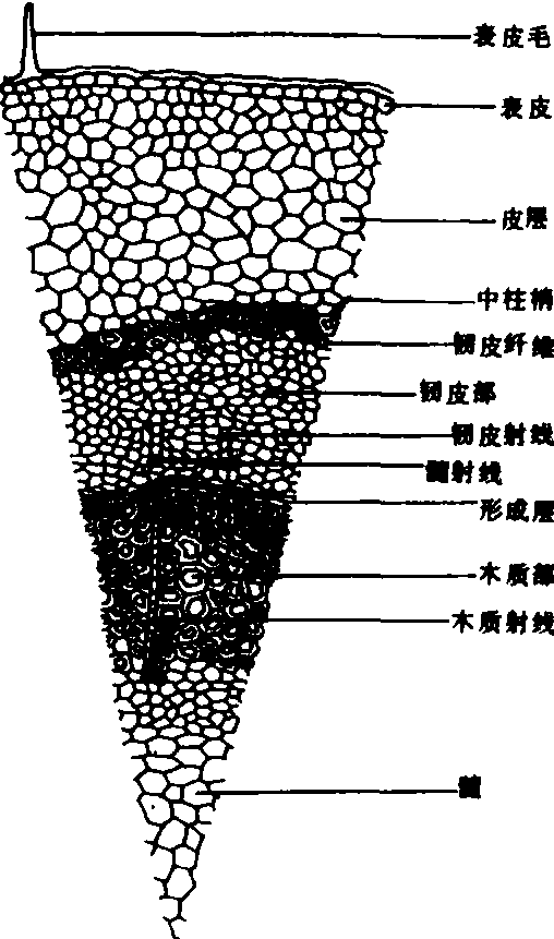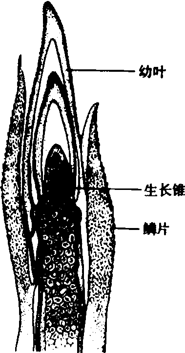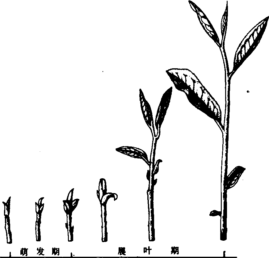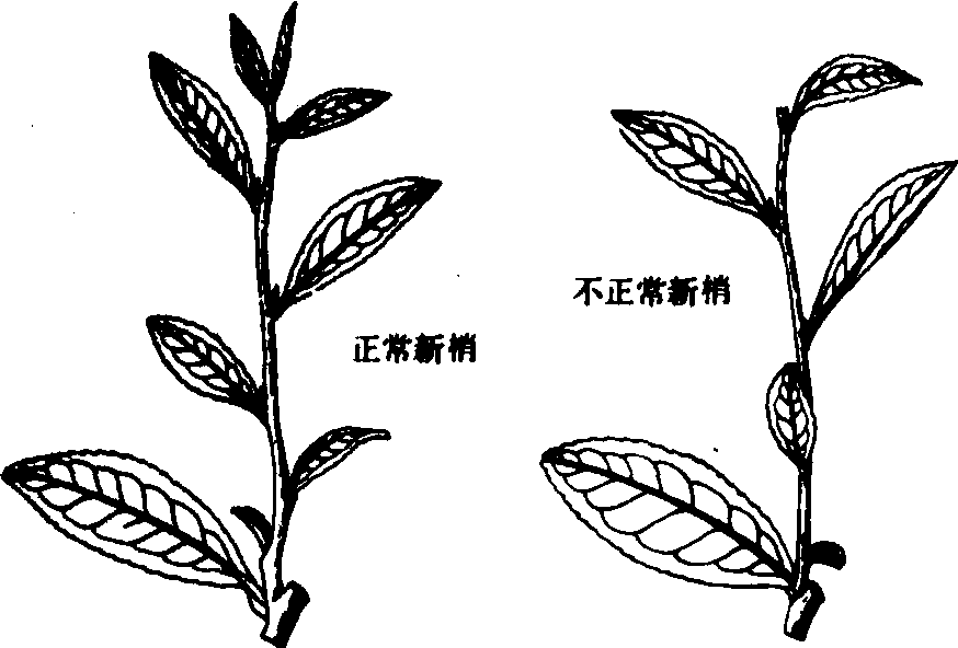 释义 | 茶树枝条branches and shoots of teaplant茶树的营养器官之一, 茎和成熟或正在生长的新梢称为枝条。枝条是构成茶树树冠的骨架, 起着支持叶、花和果实并向上运输由根部吸收的水分、无机盐以及将光合作用的产物输送到茶树的各个器官的作用。茎贮有淀粉、糖类、脂肪等营养物质, 以供新梢生长的需要。将枝条的一段剪下插入土中, 在适宜的环境条件下可再生成新的植株。因此, 支持、运输、贮藏和繁殖是茶树枝条的主要生理功能。 图1 茶树幼茎横切 节间 茶树节间的长短一般在2~4厘米之间, 长的有达8~10厘米, 短的在1厘米以下。大叶种节间长, 中、小叶种节间短。同一品种间, 叶片越大, 节间越长。在土壤水分、养分多, 蔽荫多湿的条件下,节间亦较长,树龄小,树势旺盛的节间长, 反之则短。同一株树上不同枝条, 节间长度亦有差别。徒长枝、树冠顶部以及上部枝条的节间则长, 树冠两侧及中下部枝条的节间则短。新梢上节间长短的规律是中间长,两头短。一芽五叶的正常新梢, 其节间长短为: 从鱼叶到第一叶和第四叶到第五叶的节间最短, 其次是第一叶到第二叶和第三叶到第四叶; 而第二叶到第三叶的节间最长。这是由于茎的顶端伸长至中间节时, 叶片开展正处于生育中期, 新梢生长旺盛, 水分、养分的供应量充足之故。新梢节间长的比节间短的产量要高些, 通常枝条节间长、叶片大是优良品种的标志。 结节枝 茶树冠面生产枝表面形成环状的肿胀形突起者, 称为结节枝。结节枝本身十分细小, 养分运输困难, 育芽能力衰退; 在结节枝上生长的新梢, 也细弱而密集, 生长势弱, 展叶少, 对夹叶多, 芽叶瘦小, 形似鸡爪, 称为鸡爪枝。结节枝的大量出现, 育芽力锐减。对夹叶增生, 冠面出现衰老状态。 茶芽 茶芽是指茶树枝条上产生叶、枝条的原始体。发育为枝条的芽称为叶芽或营养芽。 茶芽依着生部位分为定芽和不定芽, 定芽又分为顶芽和腋芽, 生长在枝条顶端的芽称为顶芽; 生长在叶腋的芽称为腋芽。在茶树其它部位如节间或根部生长的芽, 称为不定芽。顶芽对腋芽的生长有抑制作用, 这种现象叫做顶端优势。除去顶芽或使顶芽生长受阻时, 就能促进腋芽或不定芽的萌发。 茶芽依发生的季节可分为冬芽和夏芽。冬芽较粗大,秋冬间形成, 次年春夏发育, 外有鳞片3~5枚,密生茸毛, 茸毛有防止水分散失和防寒作用; 夏芽较冬芽小, 春夏间形成, 夏秋发育, 外有1~2枚鳞片, 或无鳞片, 由鱼叶代行其功能。 茶芽依生长动态可分为生长芽和休眠芽。处于正常生长的芽叫生长芽, 休眠芽是指尚未分化完全或因外界环境不宜而暂时处于休眠状态的芽 (图2), 新梢完全成熟后或因水分、养分不足时, 顶芽停止生长而成细小的芽, 叫做“驻芽”, 驻芽和尚未分化完全的腋芽统称为休眠芽。另外, 潜伏于老树枝皮层内, 长期处于休眠状态的潜伏芽, 也属于休眠芽。潜伏芽可以休眠多年, 它的芽轴能随茎的增粗而伸长, 茶树经过重修剪, 台刈或者当上部枝条枯死时, 可促使潜伏芽等休眠芽萌发成为新的枝条。 图2 休眠芽萌发过程 茶芽有很强的再生能力, 在一定程度上, 采掉一批能萌发下一批嫩芽; 采去一个顶芽, 就有更多个芽梢形成。 一般生长在温暖、湿润条件下的茶树, 其茶芽较粗大, 大叶种茶树的芽较中小叶种的大, 树冠分枝过密、细弱的, 茶芽较瘦小, 分枝密度适中、生长健壮的, 茶芽大而粗。凡芽大质重, 茸毛较多的为优良品种的特征。芽的色泽与叶绿素、花青素含量有关, 一般为绿色, 黄绿色或带紫色, 也有密被茸毛而呈银白色的。 茶芽内部结构 营养芽是枝条的原始体, 它的内部结构具有枝条的雏型。茶芽纵切面 (图3), 可见外有鳞片, 作覆瓦状覆盖于生长锥上面。鳞片上有茸毛,芽的中央有一个芽轴是未发育的茎, 芽轴顶端圆锥形部分称生长锥。生长锥的细胞紧而小,为未分化的原生组织。由于生长锥的细胞不断分裂,芽轴就不断伸长。生长轴的两旁的小突起叫叶原基, 发育成幼芽, 叶原基离顶端越远, 形成越早, 分化程度越高: 离顶端越近,形成越晚,分化程度越低。叶原基的腋间的小突起称为腋芽原基,发育成为侧枝。在生长锥下面,组织已开始分化为表皮、皮层、输导束、髓等。 图3 茶芽纵切 每个茶芽所包含的幼叶数目多少不同, 多的8~9叶, 少的2~3叶。通常情况下, 冬芽、顶芽较多, 夏芽、侧芽较少。幼叶数的多少可能与营养、气候等条件影响叶原基的分化有关。 茶芽不论是顶芽、腋芽或不定芽, 都有类似的内部结构。通过茶芽的纵切面, 可以观察芽的结构及了解茶树新梢的生长发育。 新梢 营养芽发育而成新梢, 凡展叶数达四片以上的统称为正常新梢。顶芽明显具有继续生长和展叶能力的称为正常的未成熟新梢;如展叶达四片以上,顶芽停止生长不再展叶而成为驻芽的, 则称为正常的成熟新梢(图4)。 不同品种的正常新梢长度不同, 同一品种和相同环境条件下, 新梢长度随展叶数而变化,展叶数越多,新梢就越长, 新梢重量除随展叶数不同有差异外, 还受品种管理水平、树龄等影响。中、小叶种按一般红绿茶采摘标准的一芽二、三叶重量为0.2~0.5克, 水肥条件好或生育旺盛的幼龄、更新后茶树的正常新梢,采下的一芽二、三叶重量可增重0.1~0.3克, 大叶种的新梢重量要比中、小叶种的增加一倍以上。 图4 茶树新梢 正常新梢应具有一定的生育强