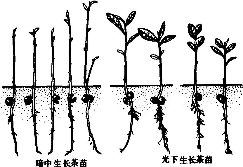 释义 | 茶树气候tea treerelated climate在茶树生长发育中所需要的各种适宜的气候条件, 包括温度、光照和水份。它对茶树的分布、茶叶产量和品质有着重大的影响。 图1 光对茶树生长的影响 图2 福鼎大白茶阳生叶横切 图3 福鼎大白茶阴生叶横切 水分 水是茶树的重要组成成分, 而且是最大的组成部分。水分是代谢过程的反应物质;是吸收、运输物质的溶剂;能维持茶树细胞的膨胀。细胞分裂和伸长要求充足的水分。水分是茶叶丰产优质的重要保证。茶树不同器官、同一器官不同年龄,含水量差异很大。生长旺盛的芽叶含水率达75~80%, 老叶含水率65%左右;枝干含水率约45~50%; 主根含水率50%左右;而吸收根含水率高达78%以上。茶树各器官含水量还随生理状态、季节和环境条件的变化而改变。茶树内的水分有自由水和束缚水两种状态。自由水参与代谢活动, 代谢旺盛的器官自由水含量高; 束缚水不参与代谢活动, 一般束缚水含量高, 茶树抗性较强。茶树对水分的要求较高。环境中的水分包括降水量、土壤含水量和空气相对湿度。❶降水量: 茶树生长最适宜的年降水量是1 500毫米左右。在生长期中, 月降水量有100毫米就能满足茶树生长的需要。假如连续几个月的月降水量低于50毫米, 茶叶产量便显著下降。茶叶产量与蒸发蒸腾总量、降水量有显著的相关性, 蒸发蒸腾总量大于降水量时, 当季产量便受严重影响。中国大部分茶区年降水量在1200~1800毫米之间。一般均能满足茶树生长和丰产要求。但是, 茶树生长期中的需水量不是均衡的, 一般夏季需水量最多, 春、秋季次之。在夏秋季节常出现伏旱和秋旱的地区, 应及时采取供水措施。中国南部的海南岛、云南等部分茶区,尽管终年气温较高, 但有雨季和旱季之分, 各月茶叶产量有随降水量高低而增减的趋势。总之, 年降水量高低对茶树生长的影响, 决定于生长季节降水量的分布均匀, 同时也与气温和蒸发速度等有关。(2)土壤含水量: 土壤含水量受降水量和蒸发量及其相关因子所制约, 并且还受茶树蒸腾量的影响。适于茶树生长的土壤含水量, 上限是田间持水量的90%, 下限是田间持水量的60%, 以田间持水量的75~80%为最好。茶树芽梢细胞分裂和伸长, 特别需要水分供应。土壤水分不足, 阻碍细胞伸长, 芽梢短, 提早出现蛀芽而老化, 叶小质硬。茶季结束后, 需要保持适宜的土壤水分, 以利秋末茶树根系生长、水肥吸收、光合作用正常进行和养分贮藏。冬季茶树休眠, 仍需要满足生理需水,有利于茶树越冬抗冻和来年春茶产量形成。 ❸空气相对湿度: 茶树对空气湿度要求较高, 茶树生长最适宜的空气相对湿度为80%以上。相对湿度高, 减少土壤水分蒸发, 降低茶树蒸腾作用, 从而减少水分消耗, 起着补偿降水量不足的作用; 特别是云雾多, 空气相对湿度高, 便减少对茶树生长不利的直射光, 降低了光强度, 改变了光质, 增加漫射光比重, 茶树新梢中纤维素含量少, 芽叶柔嫩, 咖啡碱、氨基酸、蛋白质较多, 高山云雾茶因而成为优质名茶。中国一些名茶区, 如黄山毛峰、庐山云雾、西湖龙井、六安瓜片、君山银针、洞庭碧螺春等, 除其它方面的优越条件外, 多由于山高云雾萦绕, 空气湿度大, 或近江河湖泽、水气交融, 茶叶品质极佳。 |