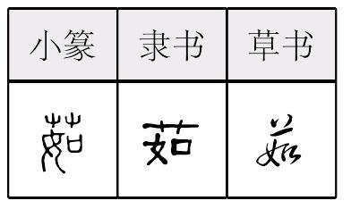 另见:种植 树木 草 花 ☚ 植物 菌类植物 ☛ 〖茹〗 粵 jyu4〔如〕普 rú ❶ 吃。許慎《說文解字》:「〜,飤馬也。」(飤:通「飼」。飤馬:即以草餵馬,後引申為吃、進食。)莊周《莊子.人間世》:「回之家貧,唯不飲酒、不〜葷者數月矣。」(葷:肉類。) ❷ 含。范成大《相州》:「〜痛含辛說亂華。」 ❸ 蔬菜的總稱。枚乘《七發》:「白露之〜。」 ❹ 柔軟,軟弱,無力。韓非《韓非子.亡徵》:「柔〜而寡斷。」