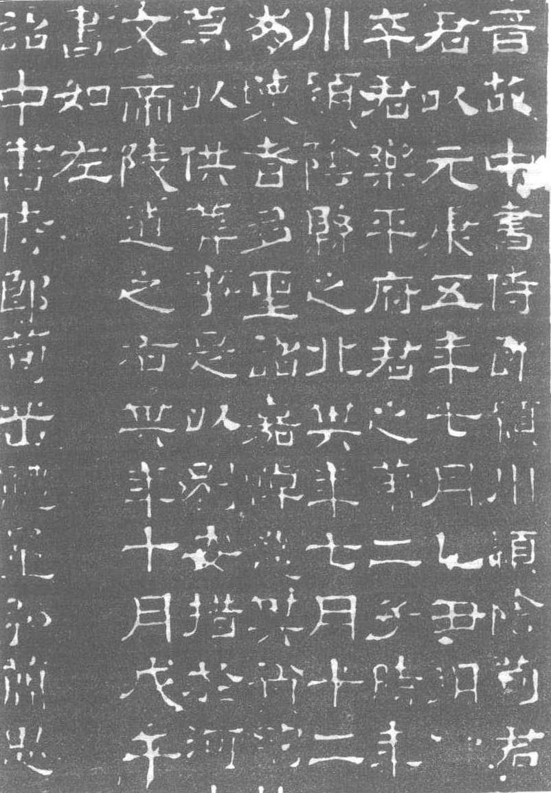 释义 | 荀岳暨妻劉簡訓墓志西晉·永安元年 (304) 刻。四面碑。分書四十行,正面十七行,背面十八行,兩側有夫人劉氏附葬記事文字五行。行各二十一字,除空格外,其六百九十二字。碑形較小,樹于壙中,堪視為墓志形。碑面視之如新,毫無毁損。書法上承漢、魏,下啟六朝,整正清隽,亦為可觀。沈曾植以為“中郎 (蔡邕) 筆勢之嫡系。” 亦有偽托之說。民國七年(1918)在河南洛陽故城東十里蔡莊人掘井得之。初歸鮑氏,後流入日本,今藏京都大學人文科學研究所。收入有正書局《六朝墓志精華》 中。碑文可補 《晉書》之缺。 荀岳暨妻劉簡訓墓志 (局部) |