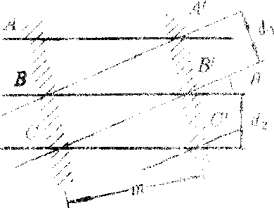 释义 | 莫阿条纹 莫阿条纹mo′a tiaowen两片光栅常数相近的透射光栅重叠在一起时产生的衍射条纹。设两光栅常数分别为d1、d2,光栅狭缝夹角θ,如图示,则产生的粗条纹ABC′、A′B′C′等即为莫阿条纹。莫阿条纹的产生是两个光栅的两次衍射,其分析是相当复杂的,Guild等人进行过系统分析。但用简单的几何分析,也可以决定条纹的位置。分析结果是,莫阿条纹间隔m=d1d2/ ☚ 布喇格条件 佛光 ☛ |