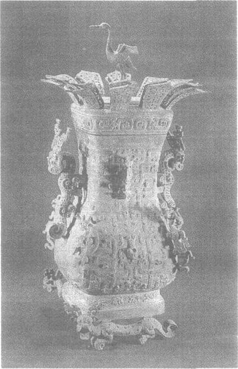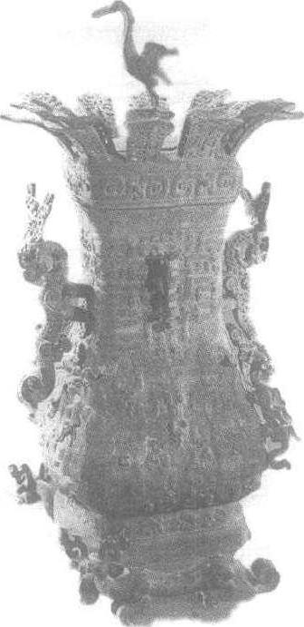 释义 | 古代名物 > 珍寳類 > 金銀部 > 銅器(附) > 莲鶴方壺 莲鶴方壺 liánhèfānghú 春秋中期青銅方形壺,蓋頂爲雙層蓮瓣,中央佇立一鶴,故名。通高一百一十八厘米,口長三十·五厘米。蓋頂鶴昂首舒翅,作欲飛狀。器雙耳爲鏤空的顧首伏龍。頸面與腹四隅皆以伏獸代替扉稜。通體滿飾蟠螭龍紋。足下承以吐舌雙獸,獸首有突伸的兩角。此器造型新穎,給人以清新活潑之感。1923年,河南省新鄭李家樓出土。北京故宫博物院藏。 古代名物 > 日用類 > 宴飲部 > 貯酒器 > 蓮鹤方壺 蓮鹤方壺 liánhèfānghú 春秋晚期青銅酒器。1923年河南新鄭出土。一對。其一通蓋高一二五·七厘米。口縱二六厘米,寬三一·七厘米。器形壯麗。壺身飾蟠曲龍紋,四角攀緣着有翼的飛龍。兩旁為鏤空有華冠之龍形大雙耳。圈足,下伏有咋舌雙籠。有蓋,蓋周並列雙層蓮瓣,蓮瓣中立一鶴,作張翼欲飛、引吭長鳴狀。蓋周飾以竊曲紋。此壺所飾鳥獸具有動態和旋律感,與商周青銅器的裝飾花紋基本呈靜態的肅穆格調,形成鮮明的對照,體現了新時期的藝術構思。現藏河南省博物館。 莲鹤方壶春秋(公元前770~前476)时期的青铜器,1923年于河南新郑出土,共1对,分别藏于河南省博物馆和北京故宫博物院。藏于故宫博物院的一件,通高122cm,宽54cm。壶身遍布蟠曲龙纹,两旁有镂空龙形大耳,圈足下伏2兽,壶盖四周列2层向外开张的莲瓣,中央立1鹤,振翅欲飞。造型华丽,工艺精美。 莲鹤方壶 莲鹤方壶铜壶是盛酒的器皿,《诗经》上就有“清酒百壶”的记载。古代的壶和今天我们生活中用的壶形状不一样,有圆、扁圆、方等形式,惟不见有嘴者(带嘴的器具,古代称为盉)。壶通常有耳,也有带盖者。古代匠师巧于设计,往往把这些本为实用的部件做成禽鸟兽类等装饰,有浮雕、高浮雕,甚至圆雕,十分动人。 莲鹤方壶 这件莲鹤方壶是春秋中晚期的作品,1923年出于河南新郑李家楼大墓,为郑国遗物。该器形体高大(通高122厘米),制作精巧。器底有两只怪兽相托,器身布满蟠曲龙纹,两侧饰有龙形大耳。尤为引人注目的是器盖——在蓬勃怒放的莲花丛中,有一只展翅欲飞、引吭鸣叫的仙鹤,生意盎然,给人以吉祥美好春意般的联想。这种自由、轻快、活泼,富有现实精神的艺术风格和庄严、静穆带有强烈宗教色彩的商周风格,形成了鲜明的对照。艺术是生活的反映,莲鹤方壶以及同期其他铜器上的变化,形象地显示了春秋时代社会观念、审美时尚的变化。 商周以来的雕塑带有很大的依附性和附属性,而莲鹤方壶上的立鹤则开始带有明显的独立性质,它预示着中国雕塑 一次重大的变化和飞跃。 ☚ 驹尊 编钟铜虡武士 ☛ 莲鹤方壶 莲鹤方壶春秋中期制品,1923年在河南省新郑县城关李家楼出土,现为北京故宫博物院收藏。壶高126厘米,口长30.5厘米,口宽24.9厘米。壶体为长方形,直口微侈,长颈,深腹,下腹鼓凸,圈足外撇。造型主体为春秋时期常见的方壶式样,其令人瞩目之处是雕饰奇特的造型附件和装饰。双耳为圆雕伏龙,双角高耸,回首卷尾,龙体起伏,鳞纹镂孔。腹部四角以伏兽取代扉棱,四兽回首曲体,肩生双翼。圈足底部塑两条回首咋舌的长尾小兽,承托器体,颇为奇异。壶身群兽缠绕,参差嶙峋。 莲鹤方壶 此壶最富有特色的是壶盖的设计,方盖顶 一周透雕双层莲瓣,外张如同盛开的莲花,中心有可活动的长方形盖顶,上铸一振翅欲飞的立鹤,形象写实,姿态矫健而豪迈。立鹤雄踞盖顶,起到统领全局的作用,使众多物象得以协调。器表饰以浅雕纹样,工细繁密,盖沿饰窃曲纹,壶身满饰蟠螭纹,圈足四边各饰一组相对的伏兽纹。蟠螭纹为春秋时青铜器上流行的纹饰,由数条无角的小龙(即螭)蟠屈纠结构成,细密严谨,富于韵律感。 此壶造型、装饰皆体现出春秋时新的时代风尚,雄伟瑰丽,具有舒展、向上的气势,格调清新活泼,与充满神秘威严气氛的商西周青铜器形成鲜明对照。 ☚ 虢季子白盘 云纹禁 ☛ 莲鹤方壶见“新郑彝器”。 |