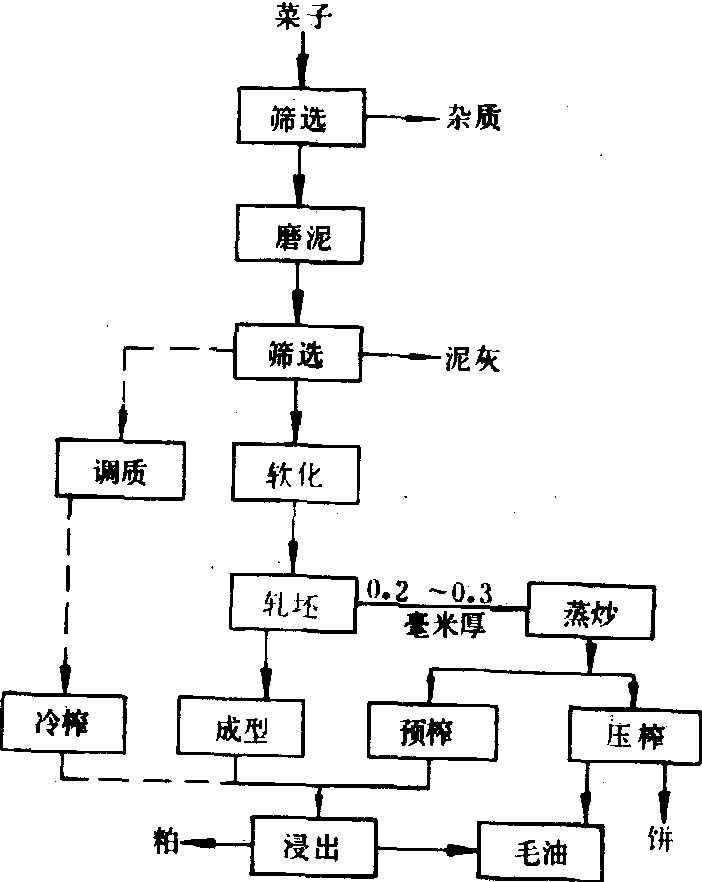 释义 | 菜子油制取加工rapeseed oil extraction从油菜子中制取油脂和饼粕的过程。油菜属十字花科芸薹属草本植物,有甘蓝型、白菜型与芥菜型之分,其子粒呈黄色、棕红色或褐色等的圆球形,平均直径1~3毫米。油菜子含油率30%~48%,含壳15%~25%,蛋白质19%~30%,纤维6%~15%,灰分4%~6%,糖类10%~24%。普通油菜子含芥子甙(硫代葡萄糖甙)4%~6%,加工时易水解成异硫氰酸酯(ITC)和恶唑烷硫酮(OZT)等有毒物质。同时,菜子油中芥酸含量高达18%~60%。芥酸是由22个碳原子组成的长链不饱和脂肪酸,人体不易吸收,营养价值低。目前,单低型(低芥酸)或双低型(低芥酸、低芥子甙)油菜子新品种,已培育成功并取得进展。例如,加拿大的卡诺拉(Canola)油菜子芥酸含量低于2%~5%,芥子甙含量低于0.5%~2%。中国一些省区引种的单低型奥罗(Oro)和双低型杰弗尔(Zepher)等油菜品种也取得成功。油菜子加工不仅可制取各种规格食用油脂、饲料用或食用级饼粕,而且,菜子油中的芥酸是良好的化工原料,可用以生产防水剂、防腐剂、润滑剂与增塑剂等。 菜子油制取工艺流程 精炼工艺 普通菜子油与低芥酸菜子油含饱和脂肪酸较少,脂肪酸凝固点较低,含游离脂肪酸高,毛油呈深黄或琥珀色,具有特殊气味与苦辣味。精炼菜子油除作食用油或工业用油外,还可用以生产色拉油或塑性油脂产品。普通菜子油的间歇式全炼工艺是:毛油过滤→磷酸脱胶→碱炼→升温(50~52℃)→静止沉淀(6小时)→净油水洗→静置沉淀→预脱色→过滤→脱色→过滤→(脱脂)→脱臭→过滤→精炼油(特种烹调油或色拉油)。精炼工艺的主要操作规程为:❶磷酸脱胶,按油量的0.1%~0.3%加入85%浓度的磷酸,以每分钟60转的速度搅拌约半小时。这样,除有助于脱磷、沉淀皂脚和减少油耗外,还有利于去除叶绿素等。 ❷碱炼。使用16~18°Be′碱液,超碱量0.2%~0.3%,搅拌约1小时。 ❸水洗。将净油升温至85℃,按油量的15%加入盐水、碱液(浓度为0.4%、温度为90℃),放油脚后再用清水洗涤2~3次,要求净油含皂量低于0.03%。 ❹真空脱水、预脱色与脱色。在真空度约为98.5千帕的条件下,将油升温至90℃脱水后,按油量的0.5%~5%加入活性白土搅拌脱色,降温到70℃时过滤。 ❺脱臭。温度升高到185℃、残压为400~700帕,进行约5小时的罐式脱臭。 ❻冬化脱脂。调节油温至40℃,冷却到-2℃,在0~2℃时结晶、养晶36~48小时,在3~5℃时过滤,即可得色拉油。一般烹调油不经冬化工序。双低型卡诺拉菜子油精炼工艺有两个特点。一是毛油含磷量较高(大于3.5%),一般须采用磷酸脱胶, 脱除非水化性磷脂, 使含磷量降到10~50 ppm(普通水化法为150~250 ppm)。二是碱炼后含硫量较低,具有与大豆油相近似的氢化条件,有利于生产起酥油等产品。 饼粕利用 菜子蛋白是一种营养价值高、含量丰富的饲料用蛋白。菜子蛋白中的蛋氨酸、胱氨酸及赖氨酸的含量均优于或相当于大豆蛋白。但是,普通菜子饼粕饲用前,必须进行脱毒处理。饼粕中芥子甙含量应低于45 ppm。普通菜子饼粕的去毒方法主要有干热钝化芥子酶;混合溶剂(如含氨甲醇与己烷)浸出提取芥子甙;碱处理膨化法;高温蒸煮法;水煮法;坑埋法;发酵中和法;化学添加剂如Ne2CO3、Ca(OH)2或0.5%FeSO4等处理。菜子饼粕去毒后除主要用作饲料外,经脱皮、去毒、脱脂后,还可用作食品,但尚处于试验阶段。 |