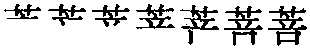 【提示】艹,3画,宋体是一横两竖,楷体第三笔竖改撇; 不要依旧字形写成四笔 ( )。 *菩bèi11画 艹部 草名,可织席。 另见pú(316页)。