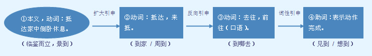 释义 | ![]() ❶动 达到。 【例句】他的表演技巧实在~了炉火纯青的程度。 【同义】见“达到”。 ❷动 到达。 【例句】一~周家,按此间风俗,拜了年,就像~了家。 【同义】见“到达”。 到达,达到。多用于口语。可带动态助词“了”“过”。 a.作带宾、带补谓语。 ~了一批西瓜|~了一个新阶段|~了九个人|~了目的地|~了期限|五年前我曾经~过北京|时针悄悄地移动着,不知不觉就~了12点|牺牲的时候陈清的年龄还不~19岁|他的忍耐已经~了极点|客人们都~齐了|我发现自己~得太早了一点|~了三四天了|他~哈尔滨一个多星期了|今天的招待会~不了多少人|时间早就~了,可是电影还没开映|成都车站~了。 b.作补语,表示动作达到目的或有了结果。 演出用的服装和道具都借~了|这批货刚运~|说~做~|这点事我办得~|这些事只有心细的女同志才想得~|这电视机连中央台的信号都收不~|我跑遍了全市还是没买~我要的字典|他们看不~长远的利益。 ❶构成介宾词组说明动作的趋向、处所,涉及的范围对象,持续的时间、动作或性状所达到的程度。 a.作状语。 ~图书馆看书|~哪儿去?|小胡刚才~办公室来过。 b.作补语。 手电筒的白光毫不客气地直射~他的脸上|这一仗关系~整个西线的战局|他经常工作~深更半夜|局势已经发展~无可挽回的地步了。 ❷构成介宾词组表示动作的时间或说明动作到某一时候为止的状况。作状语。 ~今天晚上九点中国队已经夺得了七个项目的12块奖牌|这条路平时行人就不多,~冬天的夜晚更显得寂寞冷清|新建的宿舍~月底可以竣工|一放暑假他就回老家了,~开学的时候还没返校。 用在形容词后面,表示状态达到的程度。其作用相当于引进结果、情态补语的助词“得”,多数例句可以改用“得”。 甲板上平稳~跟平地上差不多|晨雾浓~看不清对面的行人|他声音高~不能再高了。 【近】 〈动〉来 〈助〉得 【词语】 到场 到家 到来 到期 到任 到手 到头来 到职 字源解说 “至”是“到”的本字。至,甲骨文 ![]() ![]() ![]() ![]() ![]() ![]() 附 文言版《説文解字》:到,至也。从至,刀聲。 附 白话版《说文解字》:到,抵达。字形采用“至”作边旁,采用“刀”作声旁。 引申线索 ![]() 【字族索引】 至 到 【同音字】 dào |