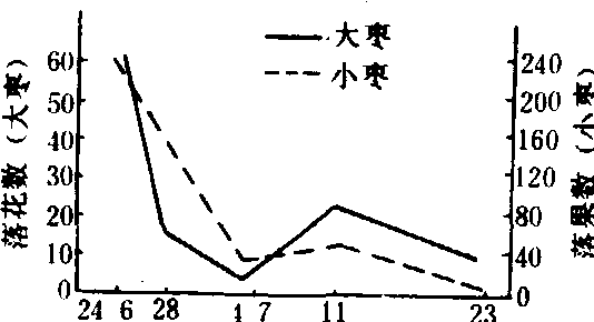 释义 | 落花落果abscission of blossoms andfruits从花芽开绽、果实生成到成熟以前的发育过程中非正常脱落现象。包括花蕾、花朵和幼果。果实在临近成熟前脱落则称为熟前落果或采前落果。常绿果树在越冬期间的落果称冬季落果。 (日/月) 落花 在开花、谢花之间, 子房或其附属部分随即脱落者, 称落花; 花蕾未开放而脱落者称落蕾。落花常常是花量多, 盛花期长, 花朵发育期短或发育中途败育等原因。枣的落蕾量约为20~60%, 柑橘的某些品种可高达80%左右;葡萄、杏等则落花量颇高。雌雄异花的雄花, 一般在开放、散粉后脱落。苹果的某些品种如国光, 开放而未授粉、受精的花朵, 花柄常不能形成离层, 当年并不脱落。落果 果树的早期落果, 发生在落花后1~2个月内, 落果的始期、持续时期、脱落高峰和次数, 因果树种类、品种而异(见图1、图2)。仁果类和核果类果树一般有二次落果高峰,第一次多在落花后2~3个星期, 多数是受精不完全的幼果; 第二次在落花后4~5个星期, 北方果区仁果类大体在6月上中旬。有的树种、品种落果量大, 常影响产量。具有单性>结实的树种或品种, 其落果次数不明显, 如柿、柑橘、枣等花期较长, 幼果脱落期也较长。葡萄落花落果较集中,常于盛花后2个星期内一次脱落。苹果、梨、桃、柑橘等果树,果实在成熟前还有采前落果现象, 其程度与品种特性有关, 苹果中旭、大珊瑚、元帅等品种采前落果严重, 自成熟前30~40天起开始少量脱落, 15~20天大量脱落;柑橘一般发生在越冬过程中。采前落果会给果树生产带来重大损失。比 盛花期后天数 落花落果原因 ❶花器发育不完全。如雌蕊、胚珠退化。 ❷未能授粉受精。如缺少授粉品种, 授粉不亲和, 花粉管伸长过缓, 雌雄蕊异熟等。 ❸胚发育中止。 ❹树体内贮藏营养不足。开花、坐果所需大量氮素营养, 主要来自贮藏营养, 新梢生长过旺与开花争夺贮藏营养, 或生长过弱, 使当年贮藏营养少, 难以继续提供花果发育对营养的需求。 ❺外界环境因子。低温、干旱、风沙、光照少等均影响开花、坐果, 导致落花落果。 ❻病虫为害。凡直接为害花朵、叶片者,均可造成落花落果。生产上出现过度的落花落果, 往往是综合因子影响的结果, 应分析其中的主导因子, 采取相应的农业技术, 有助于减轻落花落果。 落花落果的机制 果树花芽分化的始期、进程及其所处位置不同,发育程度很不一致, 通常花量愈多,发育不全的花量也愈多; 开花后, 授粉、受精程度不一, 所得营养也有很大差异。因此, 在自然界落花落果是果树一种“自我调节”的现象, 通常仁果类的落花落果总量在60~70%, 葡萄为80%左右, 柑橘为90~95%, 杨梅、枣则在98~99%。有的树种落花落果现象不明显, 如栗、菠萝、草莓, 栗表现为空蓬; 菠萝草莓顶端部分小花停止发育, 仅使果实变小。花、果的脱落都是在花梗、果柄基部脱落酸含量水平提高,从而产生离层, 随后离层细胞解体, 花、果因重力而脱落。产生离层部位因树种而异, 有的发生在花梗或果梗近果枝一端, 如苹果、梨; 有的发生在花梗或果梗近果实一端, 如桃的采前落果。 生理落果又称六月落果, 是与树体中内源激素密切相关。种子中产生生长素有两次高峰, 第一次在谢花后3个星期左右, 第二次在胚生长完成期。有的果实种子和果肉还产生赤霉素和细胞分裂素, 以防止离层产生。如种子偏少, 内源激素水平偏低时, 幼果就不能从其他部位的器官吸取营养,于是发生落果(一般发生于6月)。柑橘、苹果、梨、葡萄、草莓、油橄榄及酸樱桃等落果前, 果实中发现有脱落酸, 并促使乙烯水平的提高, 此时, 乙烯参与离层的形成, 引起脱落。采前落果也与果实在近成熟时乙烯水平升高有关。 |