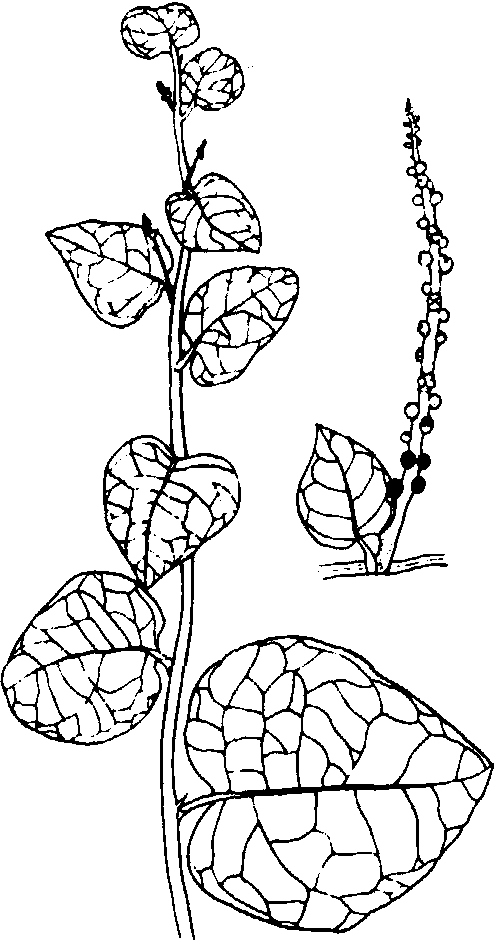 释义 | 古代名物 > 花卉類 > 草部 > 一二年生 > 落葵 落葵 luòkuí 亦稱“藤葵”、“藤菜”、“天葵”,“蘩露”、“御菜”、“胭脂菜”。其葉冷滑如葵,故稱。落葵科,一年生纏繞草本。莖緑或紫色。葉肉質,廣卵形,基部心形。夏秋開小花,带紅色,穗狀排列,腋生。落後花被增大,包其果實。嫩葉可食,全株入藥。我國各地均有栽培。明·李時珍《本草綱目·菜二·落葵》:“〔釋名〕蔠葵、藤葵、藤菜、天葵、蘩露、御菜、胭脂菜。”〔集解〕引保昇曰:“蔓生,葉圓厚如杏葉,子似五味子,生青熟黑,所在有之。”《古今圖書集成·草木典·落葵》:“馬《志》曰: 落葵,一名藤葵,俗呼胡臙。” 古代名物 > 醫藥類(上) > 草部 > 全草 > 蔠葵 > 落葵 落葵 luòkuí 即蔠葵。 落葵 落葵蔠葵的别名。见明·李时珍《本草纲目·菜二·落葵》。 ☚ 黄花菜 蘩露 ☛ 蔠葵【同义】总目录 蔠葵落葵蘩露 落葵malabar spinach落葵科(Basel-laceae)落葵属中以嫩茎叶供食用的栽培种,一年生缠绕性草本植物。属名Basella L.,别名木耳菜、软浆叶、藤菜、胭脂菜、豆腐菜等。有二个种:红落葵(B.rubra L.),染色体数2n=4x=48,茎、叶和花紫红色; 白落葵(B.alba L.),染色体数2n=5x=60,茎、叶绿色,花白色。食用幼苗和嫩梢,常作汤菜,口感滑润。含水分92.23%,每100克鲜菜中含碳水化合物3.1克左右,蛋白质1.7克左右。原产中国和印度。非洲栽培也较多。中国栽培落葵的历史悠久,中国两千年前的《尔雅》中即有落葵的记载。中国南方各省区栽培较多。 落 葵 落葵red basella;Marlabar spinachBasellarubra,别名木耳菜、藤菜、胭脂豆、紫角叶、豆腐菜。落葵科落葵属一年生蔓性草本植物。染色体数2n=4x=48。肉质茎右旋缠绕,紫红色,幼茎绿色。分枝能力强。单叶互生,圆或长圆形,先端钝或微凹,肉质光滑。穗状花序腋生、红色。果圆形,熟后紫红色,种皮紫黑色。原产亚洲热带。喜温暖,耐高温高湿,不耐寒。生育适温25~30℃。宜肥沃疏松、pH4.7~7.0的砂壤土。4~8月浸种催芽后播种,条播或撒播,也可扦插繁殖。株高30cm时应立支架。开花后30~40天果实成熟。主要用于绿化篱垣,也可用作遮掩其他物体的材料。嫩茎叶可食用,全草可入药。同属植物6种,常见栽培的有白落葵(B.alba),染色体数2n=5x=60,茎绿白色,叶绿色,花白色。 落葵药名。出《名医别录》。又名蘩露、藤葵、燕脂菜。为落葵科植物落葵Basella alba L.的叶或全草。我国长江流域以南各地多有栽培。甘、淡,凉。清热滑肠,凉血解毒。 落葵malabar nightshade古称天葵、露葵。又称木耳菜、胭脂菜。落葵科,落葵属(Basella L.)。一年生蔓性草本。原产于中国、印度,亚洲其他地区以及非洲和美洲也有栽植。有红落葵和白落葵两个种。红落葵(B.rubra L.),2n=4x=48,茎、叶和花紫红色。白落葵(B.albaL.),2n=5x=60,茎、叶绿色,花白色。两者其余形态相似。根系发达,肉质茎,右旋缠绕,分枝强。单叶互生,近圆形和长卵圆形,先端钝或微凹,肉质,光滑。穗状花序,腋生两性花。果圆形,老熟后紫红色,含种子1粒,种皮紫黑色,喜温暖,耐高温高湿,不耐寒,遇霜枯死,以疏松肥沃的砂壤土为好。终霜后和春末播种,播种前宜浸种催芽,多雨地区应采用深沟高畦。可撤播,作其他蔬菜的间套作的铺地菜。5~6叶时采收幼苗。也可育苗,在4~5叶时定植,待株高20~25 cm时摘嫩茎供食。选茎粗叶大,无病害的苗定植留种,株高30 cm时立支架,开花后30~40天果实成熟,分批采收果实。果实置容器内发酵、洗净晾干贮存。落葵质地滑嫩多汁,供煮汤或炒食。全株入药,清热凉血,外敷治痈毒。植株含紫红色素,可作食品着色剂。 落葵 落葵落葵科、落葵属植物,四川省特色蔬菜品种之一。又称染浆叶、木耳菜、豆腐菜。栽培历史悠久,尤以川西、川南种植较多。植株蔓生,分枝性强,叶肉肥厚,质地细嫩柔软,主食嫩梢及叶片。通常3月播种,5月分期采收嫩苗,也可插栈搭架,陆续采收叶片至3月。 落葵luò kuí《本草纲目》菜部第27卷落葵(13)。药名。 |
