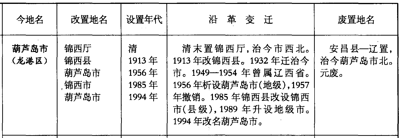 葫芦岛市(龙港区)锦西厅锦西县葫芦岛市锦西市葫芦岛市清1913年1956年1985年1994年清末置锦西厅,治今市西北。1913年改锦西县。1932年迁治今市。1949—1954年曾属辽西省。1956年析设葫芦岛市(地级),1957年撤销。1985年锦西县改设锦西市(县级),1989年升设地级市。1994年改名葫芦岛市。安昌县—辽置,治今葫芦岛市北。元废。