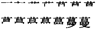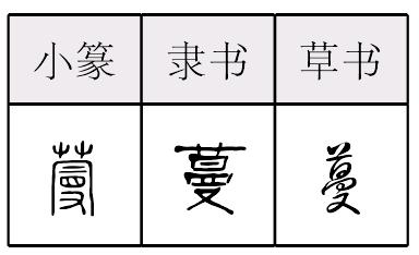 【提示】艹,3画,宋体是一横两竖,楷体第三笔是撇;旧字形4画,中间一横断为两笔。曰,中间一横宋体与左右两边相接,楷体与左边相接,与右边相离。⺲, 第四笔宋体是竖, 楷体是撇。 *蔓mán14画 艹部 【蔓菁】 (—·jing) 即芜菁。 另见màn(266页);wàn(413页)。