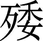 也作“蔫萎”、“蔫痿”。枯萎。例:天旱禾苗叶子被太阳晒~了,快干死了。《广雅》:“,病也。”王念孙疏证:“字亦作萎。草木枯死谓之萎。”《说文》:“菸,郁也。一曰也。”