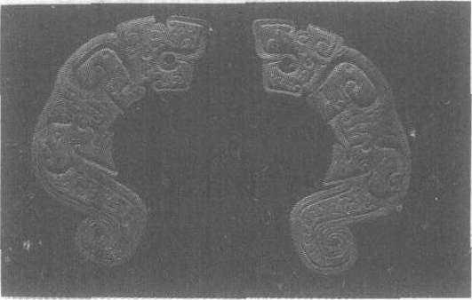 释义 | 虎形玉璜 虎形玉璜春秋晚期。长14.6厘米,厚0.4厘米。1978年河南省淅川县下寺1号楚墓出土。河南省文物研究所藏。玉料为青色,质地细腻,两件形制完全相同,原为一块玉料从中锯开,互相对称。璜为卧虎形,尾粗长,下垂后向上内卷。通体以粗细不同的阴线装饰眼、耳和虎身的纹饰,具有浅浮雕的效果。刻工精细,造型生动,口、尾处各有一圆孔可供系绳佩带。玉璜见“鸟兽纹玉璜”条目。 ☚ 兽面纹玉梳 龙凤玉璧 ☛ |