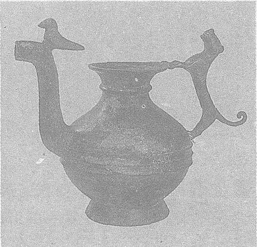 | 释义 | 虎鋬铜壶 虎鋬铜壶东汉。通高13.8厘米,腹径12.7厘米。1970年江苏省徐州市土山东汉墓出土。江苏省南京博物院藏。此壶喇叭形口,细颈,膨腹,圈足。流呈弯曲管状,一立鸟踞壶流之上。鋬作立虎形,昂首卷尾,前足攀于壶口,后足立于壶的腹上。器颈饰凸弦纹,腹中部亦为弦纹三道。此壶形制奇异,以往发现的汉墓中,此类造型的铜壶比较少见。因此,有外国学者认为同中亚器物作风有关,值得考虑。
