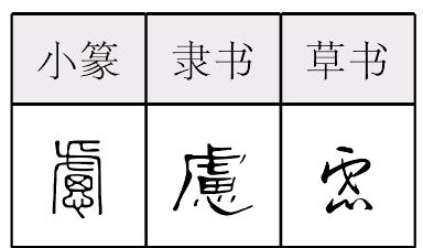 lǜ慮,形声,从思,虍声,本义为谋划、思考,引申为担忧。《简化字表》简作“虑”,意符省略为心。 【辨析】 ❶以“虑”作音符构成的形声字读音不同。lǜ:滤∣shū:摅。 ❷“虑(慮)”可作类推简化偏旁使用,如:滤(濾)、摅(攄)。虑 慮; 篆 隶lǜ【析形】形声字。古文字形从思, 声。今简化字作“虑”,声旁省作虍。 【释义】《说文》:“谋思也。”本义指周密思考,且有一定的目的。[深谋远虑]计划周详,考虑深远。[深思熟虑]深入地思考,反复地思考。引申为担忧、发愁,如[忧虑]。 【shape analysis】It is the pictophonetic character.In ancient character the meaningful part is思(sī,think)and the phonetic component is . 【original meaning】Well—conceived. |