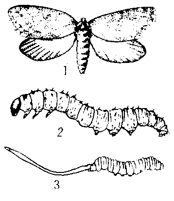 虫草蝙蝠蛾 1.雄蛾 2. 幼虫 3. 冬虫夏草 |