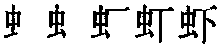释义 | 虾读音h·a(ˊ),为a韵目,属a—ia—ua韵部。胡加切,平,麻韵。 上一条: 蛤 下一条: 蝦 虾读音x·ia(-),为ia韵目,属a—ia—ua韵部。胡加切,平,麻韵。 上一条: 髂 下一条: 蝦 虾xia1(形) <新>胆怯:看你好~,连喊都不敢喊! 虾〔xia〕 dab shongb. ![]() ![]() ![]() ![]() ![]() ![]() ![]() ![]() ![]() ![]() ![]() ![]() ![]() ![]() ![]() ![]() ![]() ![]() ![]() ![]() ![]() ![]() 虾蝦xiā节肢动物,身体分头、胸、腹三部分,都有附肢。腹部由许多环节构成。体外有薄软壳。水生,种类很多,有对虾、米虾、龙虾等。 虾蝦○~蟆(青蛙和蟾蜍的统称)丨癞~蟆(蟾蜍的通称)。 虾蝦节肢动物,身上有壳,腹部有很多环节,生活在水中,捕食小虫。可食:~米︱~仁︱~皮︱~酱︱对~︱青~︱龙~︱~兵蟹将。 虾xiā一种节肢动物,种类很多,如对虾,青虾,龙虾等。 虾xiā节肢动物名。身上有壳,腹部有很多环节,可以吃。《九怀·通路》:“从虾兮游陼。”汤炳正今注:“虾,喻指小人。” 虾xiā虾蟆。比喻小人。汉·贾谊《吊屈原文》:“俪蟂獭以隐处兮,夫岂从虾与蛭螾。” 虾xia虾蛄 虾虎 虾酱 虾米 虾皮 虾仁 虾油 虾子 对虾龙虾 卤虾 毛虾 青虾 长(chang)臂虾 虾兵蟹将1 虾荒蟹乱2 虾xia节肢动物,身上有壳,腹部多环节,生活在水中,可食用:他们靠打鱼~度日|这~烧熟了就变得通体鲜红|把这些鲜~全部加工成虾仁儿。 虾xiā软壳节肢动物,生活在水中,捕食小虫为生,是美味的水产品:谁知那么个园子,除他们带的花,吃的笋菜鱼~之外,一年还有人包了去,年终足有二百两银子剩。(五六·1309) 虾xiā古代名物 > 蟲豸類 > 脊椎爬蟲部 > 蝦蟆 > 蝦蟆 > 蝦 蝦 há 亦作“蛤”。即蝦蟆。《文選·賈誼<;弔屈原文>;》:“偭蟂以隱處兮,夫豈從蝦與蛭螾?”李善注引三國吳·韋昭曰:“蝦,蝦蟇。”唐·劉恂《嶺表録異》卷上:“聞田中有蛤鳴,牧童遂捕之,蛤躍入一穴。”原注:“蛤即蝦蟇。” 虾【同义】总目录 虾虎头公长须公钓诗钓钩诗钩水晶人 虾xiā〖名词〗 虾蝦xiā一种水中节肢动物。韩愈《祭鳄鱼文》:“鲸鹏之大,~蟹之细,无不容归,以生以食。” 虾蝦há蛤蟆,青蛙和蟾蜍的统称。贾谊《吊屈原赋》:“偭𫌂獭以隐处兮,夫岂从~与蛭螾?”(蛭zhì:蚂蟥。螾:同“蚓”,蚯蚓。) 虾*蝦CFBA 节肢动物 节肢动物蜈蚣:蝍蛆 百脚 吴公 蜈公 天龙 蝍蛆 即且 蒺藜 ☚ 腔肠动物 软体动物 ☛ 虾主要指“沼虾”。 虾Hiya满语,汉译为“侍卫”、“旱”等。 虾节肢动物门, 甲壳纲,游泳亚目动物的统称。体侧扁,分头胸部和腹部。体表被几丁质甲壳所包裹。头胸部外包硬壳称头胸甲。多数种类头胸甲前端具额角,起保护眼睛和头部附肢作用。额角基部两侧有一对具柄的复眼。种类很多,全球约有2000种,有经济价值的种类不足400种。分对虾派(约300多种)、真虾派(约1600多种)和 虾 129 虾齐白石作。作者一生所画虾图不计其数。节节肥圆,晶莹透明的虾体,皆用水墨写成,活灵活现,似能动能跳。对照真虾,便知画家对虾头、须、足都作了提炼和取舍,“妙在似与不似之间”,因此画中的虾越发显得生动、天真、质朴、可爱。 ☚ 桃实图 群马 ☛ 虾 虾xia无脊椎动物,甲壳纲,十足目,游泳亚目动物的通称。体分头胸部及腹部两部分,外被甲壳。头部有附肢5对 (触角2对,大颚1对,小颚2对),胸部有附肢8对(前3对为颚足,后5对为步足),腹部有附肢6对 (前5对为游泳足,末对为尾肢,与尾节合成尾扇)。淡水和海水均产。种类甚多,如对虾、毛虾、沼虾等。肉可食用。 ☚ 鼠妇 对虾 ☛ 虾 虾Xia节肢动物门软甲纲的种类,约4 000种,海洋或淡水生活。身体分为头胸部和腹部,头胸部外包一完整的头胸甲,腹部分节明显,弯曲自如。很多虾类具有较高的经济价值。如: 龙虾 磷虾,小型,体长3—5厘米,可发光,大洋中生活,种群密度很大,为鱼和鲸类的重要食源,也是人类尚待开发的重要渔业资源。 ☚ 鼠妇 寄居蟹 ☛ 虾 虾现代·齐白石作。白石老人写意画虾形神兼备,虾头3笔,左右两笔淡墨,头胸部的淡墨上加一笔浓墨,头侧左右墨眼一对,墨色深浅浓淡,水分渗透干湿,表现出晶明质感。虾身一笔一节连续数笔,节与节相接处,笔断而意连,有节奏的由粗变细;用笔多样,躬腰向前、弯腰爬行或直腰游荡,姿态各异。虾尾也为3笔,有弹力,又透明。一对前爪,由细而粗,螯形似钳,有开有合。虾须数条淡墨画出,线条似柔实刚,似断实连,宜中有曲,乱中有序。白纸为清溪,群虾在水中嬉戏游动,栩栩如生。 虾 ☚ 桃实图(蟠桃) 群马图 ☛ 虾蝦xiā生活在水中的节肢动物,能跳跃。如:青虾,对虾,虾兵蟹将。 虾xiā《本草纲目》鳞部第44卷虾(126)。药名。 虾(蝦)há (青蛙和蟾蜍的统称) frog and toad 虾(蝦)xiā (节肢动物) shrimp: 对 ~ prawn; 龙 ~ lobster; ~ 群 a shoal of shrimps 虾shrimp 虾shrimp;prawn 虾shrimp 虾亦作辖。满语希鸦合音,音译,汉译“侍卫”。清代帝王的侍从护卫武官。明万历十六年(1588),扈尔汉(佟佳氏)从其父归附女真族首领努尔哈赤,时年13,被抚为养子,赐姓※觉罗。稍长,使为虾。三十七年(1609),命率千兵东征渥集部,叙功,“赏扈尔汉虾盔甲、马匹,仍赐名达尔汉虾”(《清太祖武皇帝实录》卷二)。后居※五大臣之一。清太宗皇太极即汗位(天命十一年,1626),仍命博尔晋兼虾,时居※八大臣之一,领满洲镶蓝旗;喀尔喀蒙古巴约特部门都(恩格德尔额驸次子),擅长相扑,力冠三军,赐号阿尔萨兰土谢图布库,亦授此职,与噶尔朱巴图鲁,并称为御前虾。顺治(1644