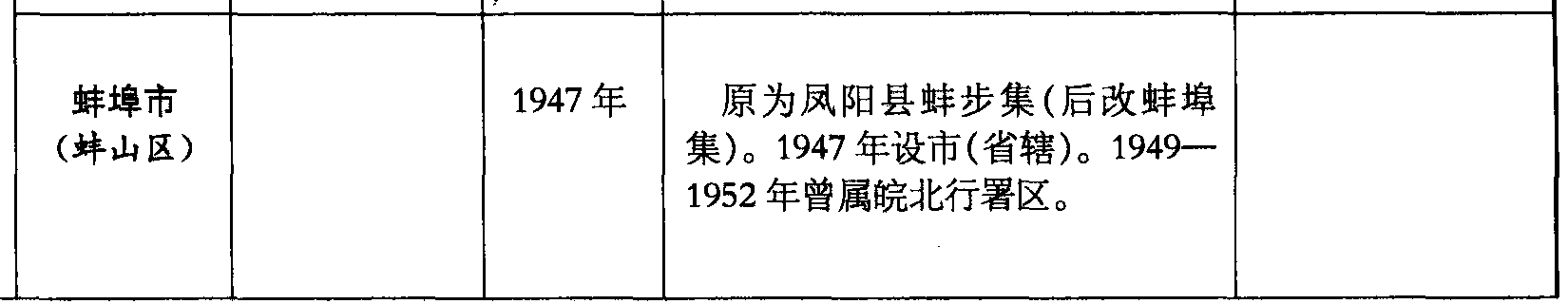 蚌埠市(蚌山区)1947年原为凤阳县蚌步集(后改蚌埠集)。1947年设市(省辖)。1949—1952年曾属皖北行署区。