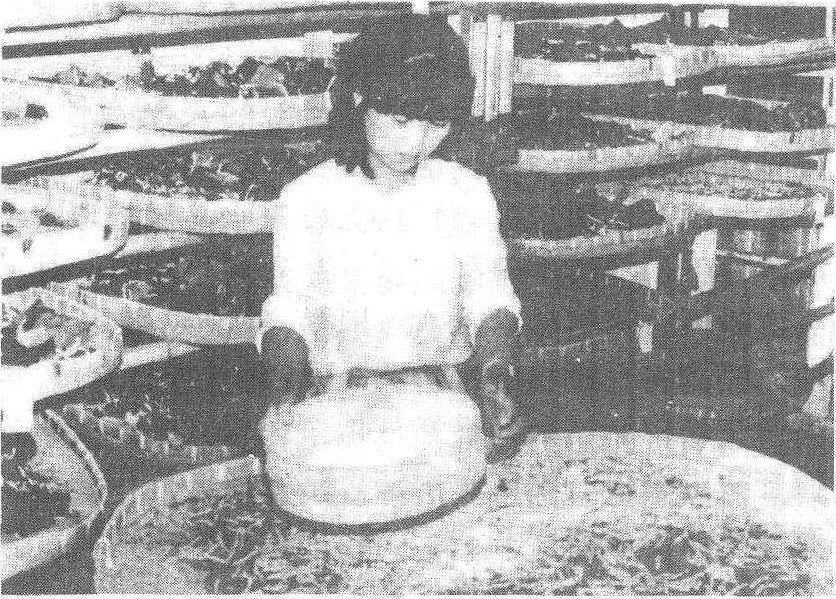 释义 | 蚕体蚕座消毒disinfection of silkworm surface and rearing bed养蚕过程中预防蚕病发生的重要技术措施之一,施用药物杀灭蚕体、蚕座表面的病原体,防止病原体侵入蚕体引起发病。常用的蚕体、蚕座消毒药剂有漂白粉防僵粉、防病一号、防僵灵2号、石灰粉等。各种药剂的配制、消毒方法及注意事项如下: 蚕体粉剂消毒 一般自蚁蚕开始每龄起蚕撒一次防僵粉,即用筛子将防僵粉在蚕体、蚕座上均匀地撒成薄霜状的一层。在僵病多发的地区或季节,可在每龄起蚕及盛食蚕时各撒一次。如已发生僵病,可每天撒一次,连撒几天,直到不见僵病;以后可改为每龄用2次。见熟蚕时用一次可防止发生僵蛹。用此药同时可防其他病原体的蚕座传染。 使用防僵粉,须在给桑前进行,蚁蚕、起蚕、食桑中的蚕均可使用。撒粉后经5~10分钟撒隔沙材料(焦糠或短稻草)再给桑。用漂白粉防僵粉后,要求当天除沙,除去药粉防止回潮。 防病1号蚕体消毒 防病1号是以聚甲醛为主的消毒药剂,对蚕病病原有很好的消毒作用。防病一号有小蚕用和大蚕用两种规格。不需另行配制,可直接均匀撒在蚕体上。用药时期、方法和漂白粉防僵粉同。 防僵灵2号蚕体消毒 即抗菌剂402,含乙烷硫代磺酸乙酯80%,是一种抗菌剂,对真菌有防治作用。养蚕上用以防止白僵病、曲霉病、绿僵病有良好效果。按规定方法使用,对蚕生理无不良影响。使用时用水稀释,1~2龄用防僵网,即将小蚕网在药液中浸湿后挤干。1龄在收蚁后第2回给桑前加用防僵灵2号的700倍液浸过的防僵网,2、3龄在起蚕饷食前加用防僵灵2号500倍液浸过的防僵网,加网后即给桑。无论是塑料膜覆盖育或炕床育,用此法防僵均效果良好。4~5龄防僵可用防僵灵2号的2,000倍水溶液喷在起蚕或盛食蚕体上,以喷湿为度,喷药后经5~10分钟待蚕体稍干即可给桑。如需在每龄盛食时再用1次防僵药剂时,可在给桑前以同样方法进行。蛹期防僵可用2,000倍液喷在蛹体上,对发蛾无影响。使用本药时应注意:❶药液浓度与药量应按规定使用,防僵网必须挤干后才可加在蚕座上,否则会引起蚕乱爬。 ❷1龄加防僵网后,有时因桑叶偏嫩,当接触药网后叶色变黄,但对蚕无不良影响。 ❸小蚕用防僵网,必须在覆盖育或炕床育条件下使用。防僵网必须覆盖全部蚕座,如网太小,会造成因药量不足而影响防僵效果。因本药主要靠接触与熏蒸作用达到消毒目的。药剂应随配随用,使用后不需当日除沙。防僵灵2号遇碱性分解,防僵作用降低,使用前后切忌使用石灰或其他碱性药品、隔沙材料如焦糠。 石灰粉蚕座消毒 新鲜石灰粉对病毒有很强的消毒作用。将新鲜石灰粉撒在蚕座上,既可对病蚕起消毒作用,又可隔离病蚕,使蚕座干燥,抑制菌类繁殖。一般从3龄起,饷食前或加网前,在蚕体蚕座上撒一薄层石灰粉,经10分钟左右再给桑,当病毒病发生较多时,可每天撒一次,对蚕生理无不良影响。 蚕体蚕座消毒disinfection of larva surface and rearing bed养蚕生产过程中预防蚕病的重要措施。施用药物撒在蚕体蚕座表面,杀灭蚕体蚕座表面的病原体,防止病原体侵入蚕体或污染桑叶后引起经口传染而发病。常用的蚕体蚕座消毒药剂与方法有: |