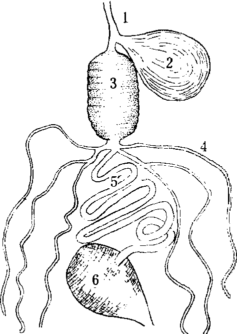 前肠 是消化管的前端部分,从口腔开始至前胸后端。前肠又分口腔、咽喉和食道3部分。口腔由口器内壁围成,外观略呈漏斗形。口腔之后为咽喉,整个咽喉位于头腔内,其后端在头胸交界处与食道相连。咽喉壁由肌肉层、底膜、上皮细胞层和内膜4层组成。食道位于第一胸节内,其后与中肠相连,呈倒置漏斗形。在食道和中肠交界处的贲门瓣,具有防止已进入中肠的食物倒流的作用。前肠的功能主要是吞咽食物并运送到中肠。 中肠 位于食道之后,起自第2胸节,止于第6腹节,是消化管中最发达的部份,约为消化管全长的78%左右。中肠外观呈粗大的长筒形,表面具有很多横的皱褶,这对增大中肠表面积和增强消化吸收具有重要作用。在组织上中肠与前后肠明显不同,自外而内由肌肉层、底膜、上皮细胞层和围食膜所组成。 肌肉层 内层是横肌,外层为纵肌,中肠通过肠壁肌肉有节奏的收缩运动,产生缓慢的波浪式蠕动,从而促进食物在中肠腔内向后移动。 底膜 是一层无结构透明薄膜。 上皮细胞层 是分泌消化液和吸收营养分的主要部份,在组织构造上也相应地特别发达。中肠上皮细胞可分为圆筒形细胞、杯形细胞和再生细胞3种。❶圆筒形细胞: 是中肠上皮的主要组成部份,尤其在中肠后端1/3部位更为发达。圆筒形细胞既有分泌消化液的机能,又有吸收营养物质的作用。细胞核椭圆形或近球形,位于细胞的近中部。细胞内缘部位的细胞膜,形成一层向肠腔突出的微绒毛,这种绒毛状突起排列整齐而紧密,由此大大增加了圆筒形细胞的吸收面积。微绒毛的长度和分布密度因中肠部位而异,中肠前部的微绒毛比较发达,中部长度较短,密度也较低。但中肠后部圆筒形细胞的微绒毛,长度长,密度也大。这种微绒毛发达程度的差异,也反映了中肠各部吸收功能的不同。在圆筒形细胞的外缘部位,其细胞质膜向细胞质内形成很多深陷,这种结构扩大了圆筒形细胞与血液之间进行物质交流的表面积。 ❷杯形细胞:主要分布在中肠中部的上皮层内,核小,位于细胞底部、呈扁平的椭圆形。杯形细胞中央具有大形的杯胞,杯胞内含有大量分泌液。杯胞周围有很多质膜突起,形成密集的微绒毛层。在杯胞与中肠腔的境界处,由细胞质突起形成杯胞的开口部。杯形细胞仅有分泌消化液的机能。 ❸再生细胞: 位于上皮底部,分散在圆筒形细胞和杯形细胞之间,也有多数再生细胞相聚在一起。再生细胞是一类未分化的小形细胞,每次眠中,旧的圆筒形细胞和杯形细胞陆续衰亡,由再生细胞通过有丝分裂迅速增殖,而逐渐分化发育为这两种细胞,从而使中肠上皮组织得到更新。 围食膜 是一层贴近中肠上皮内面的透明薄膜,厚度仅0.5微米左右,前端固定在贲门瓣基部,向后一直延伸到中肠末端。膜柔软,富有弹性和韧性,主要成份是蛋白质和几丁质,此外尚有透明质酸。围食膜由贲门瓣基部细胞和中肠上皮分泌生成,有保护中肠上皮和一定的解毒作用。眠中脱落,每龄更新。 后肠 是消化管的最后部份,其组织构造与前肠相似,由外而内顺次为肌肉层、底膜、上皮和含有几丁质的内膜。根据形态和功能的不同,后肠又可分为小肠、 结肠和直肠3部份。 小肠(又称幽门区) 是后肠的前端部份,位于第6腹节后半部,前接中肠,直径前大后小,略呈漏斗形。前肠前端向肠腔褶入,形成环状等高的瓣膜,称幽门瓣,具有调节中肠内食物向后移动和防止后肠内容物向中肠逆流的作用。 结肠 位于小肠之后,在第7~8腹节内,前后两端及中央均有缢束,使结肠分成前后两部份。 直肠 消化管的最后一段,前中部膨大,后部渐缩小,末端开口为肛门。直肠前缘两侧,各有3条马氏管穿入肠壁,盘曲在直肠壁内,称隐肾管。 后肠同前肠一样,也无分泌消化液的作用,但结肠和直肠具有从食物残渣中吸收水分的机能。后肠内膜在每次蜕皮时也同时更新,旧内膜随同旧表皮一起脱去。 成虫消化管 成虫消化管比幼虫期显著延长,全长约为体长的1.7倍。形态上有所不同,在构造上也分为前肠、中肠和后肠3部份(图2)。