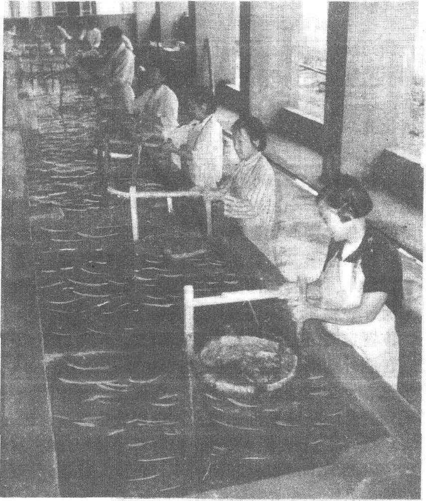 释义 | 蚕种即时浸酸common acid-treatmentof mulberry silkworm eggs蚕种人工孵化法之一。蚕卵产下以后,在其滞育特征显现以前,施用浸酸处理,停止蚕卵胚子滞育、促使其继续发育孵化的方法。影响蚕种即时浸酸法的主要条件,是产卵后到浸酸处理的间隔时间长短、盐酸浓度、盐酸温度和蚕种浸渍时间。浸酸时期关系到浸酸后有无孵化效果,浸酸时期过早,蚕种易孵化出畸形蚕甚至蚕卵溃死,过迟因蚕卵已经滞育,则孵化率很低或不孵化。浸酸时期,按胚胎发育程度言,以蚕卵发生胚盘之后到胚带独立成为胚胎的阶段最为合适。在实际处理中,并不经过解剖胚胎观察而决定浸酸适期,只按产卵后保护温度和时间的有效积算温度来决定。且母蛾产卵有先后,为了使应浸蚕种都纳入有效浸酸范围,产卵起迄不超过8小时,在中心产卵后保护于24~25℃温度经20小时进行浸酸,有效积温为280~300℃,此时卵呈黄色,随着时间的推移,卵色逐渐加深,如果已达淡赤色,浸酸效果减弱。浸酸前预先调制盐酸稀释液,为了防止平附种或框式种在浸酸中造成蚕卵脱落,要按盐酸稀释量的2%加注甲醛原液(图1)。 图1 蚕种及时浸酸 5分。中国系蚕品种的1化性品种,日本系和欧洲系蚕品种为5.5分钟。在浸渍过程中,当不能确保目的温度时,可按温度高低,缩短或延长浸酸时间,来调整刺激量。浸酸完毕的蚕种,应立即水洗脱去酸味,如有盐酸残留,蚕种孵化不良,对蚕的发育有影响,必须充分水洗。水洗后经脱水力求迅速干燥,湿卵长时间堆积,将降低孵化率。干燥不匀,孵化也不齐(图2)。 图2 蚕种脱酸 由于作业安排或其他原因,需要推迟浸酸时,可在预定施行浸酸前1~2小时,进行冷藏抑制,冷藏温度5℃,最长抑制日数不超过3日。又浸酸后蚕种,需推迟催青收蚁时,可于浸酸后经18小时(保护温度24~25℃)冷藏抑制,先在中间温度15℃中保护4~6小时,再用5℃冷藏。可冷藏30日,但在浸酸后经过40小时冷藏的,冷藏安全期稍短,不宜超出20日。 即时浸酸的另一方法是室温浸酸。此法盐酸不加温,依一般室内温度浸酸,具有节约能源,浸酸处理安全的优点。在前述同样产卵的经过时间,初夏一般室温下,盐酸液温27℃,比重为1.110,浸渍时间为60~100分。当液温高到29℃时,浸渍时间宜缩短为40~60分钟,对平附种或框式种进行室温浸酸时,必须先将蚕种在2%的甲醛原液中浸2~3分钟后再浸酸,以防止蚕卵脱落。 |
