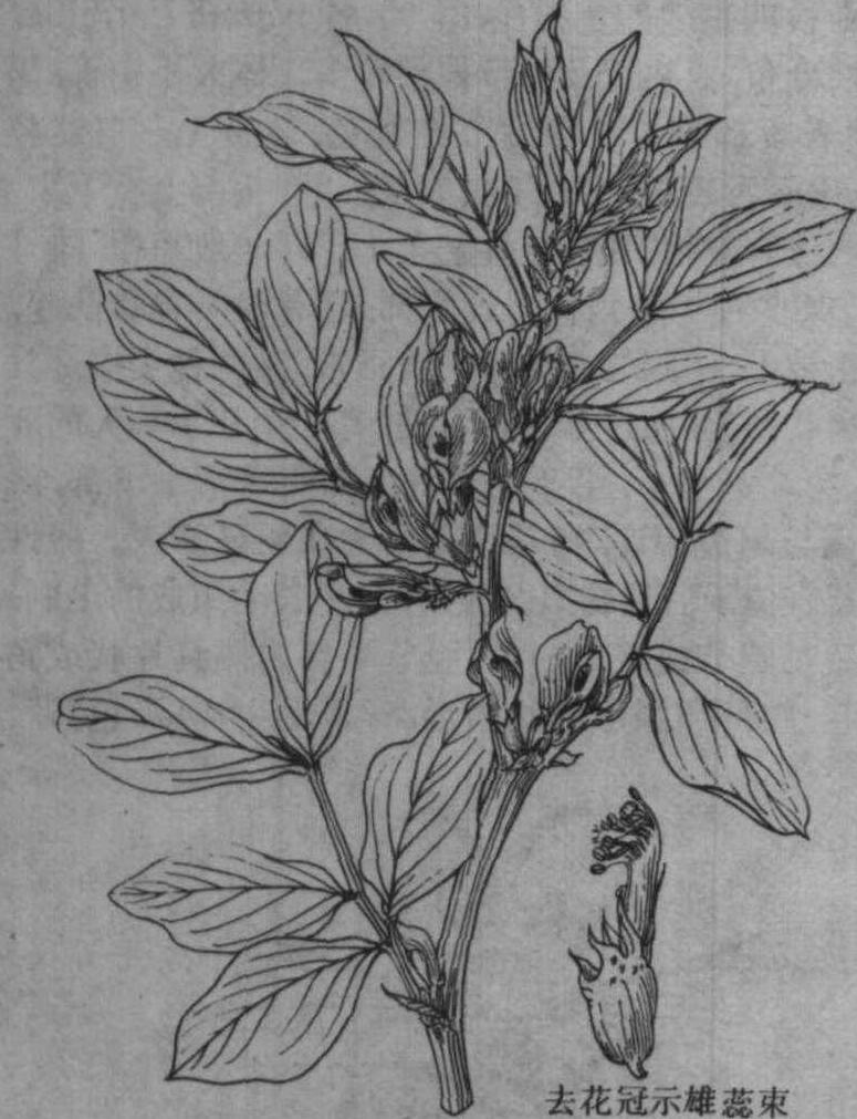蚕 豆 类型 按子粒大小蚕豆分为三个变种:❶大粒种(var.major):种子长、宽而扁,叶大,早熟,品质好,耐旱力差,如牛踏扁、大青扁等,可粮用和菜用。 ❷中粒种(var.equina):种子扁椭圆形,如香珠豆和阔板青等,可粮用或制作副食品。 ❸小粒种(var.minor):种子短小,适应性强,产量高,品质差,主要作饲料和绿肥,如小粒青和白胡豆等。 生长发育 蚕豆的生育过程经历出苗期、分枝期、现蕾期、开花结荚期和鼓粒成熟期。❶出苗期:从种子萌动到茎叶露出土面2厘米,约经8~14天。种子发芽始温3~4℃,适温9~12℃,子叶不出土。 ❷分枝期:从出苗到长出2~3个分枝。生长适温16~20℃,幼苗能耐-4℃低温。 ❸现蕾期:从分枝到主茎顶端已长出花蕾并被2~3片心叶遮盖。适温15~20℃,1℃时花蕾受冻。 ❹开花结荚期:从始花到豆粒开始充实,适温16~20℃,10℃以下开花甚少。 ❺鼓粒成熟期:从子粒充实鼓起到变硬,需要晴朗天气,以15~20℃为宜,温度过高被迫早熟而减产。 蚕豆的冬性品种主要由分枝结荚,春性品种由主侧枝结荚。有效荚多着生在4~6复叶节位上。单株现蕾百朵以上,花、荚脱落率达82~90%,都因光合产物不能满足营养生长和生殖生长的需要引起。全株花期15~25天,单花开放2~3天,花后8~11天成荚。 栽培技术 中国南方秋播地区在9月底至10月中旬于平均气温17℃左右时播种,冬前长成3~4个复叶和3~6个分枝,主根入土深40~50厘米。北方春播地区于气温稳定在3℃以上的3~4月中旬播种,常和棉花、麦类等间作或混种。播种深度3厘米左右。每亩留苗1万~1.5万株。也可用营养土块育苗,2叶时定植。蚕豆喜湿,适宜pH值为6.2~8.0的土壤。在生长期内,若以亩产160公斤子粒计,则需吸收氮10.3公斤,磷3.2公斤,钾8公斤。苗期一般不浇水,宜多中耕,开花结荚期需肥水多,缺水缺肥易致花、荚脱落和影响干物质积累。叶面喷硼和钼微量元素,能早熟增产,提高抗病力,适时整枝可控制株高,改善植株营养和光照条件。每株留3~4个有效结果枝,保证正常结荚。菜用青豆粒在植株中下部荚果表面出现光泽,种子长足而未硬化前分3~4次采收。干豆粒在中下部荚果变黑褐色且干燥时收。采种时选下部大粒荚,完熟(或稍早)时收获。品种间设隔离区防杂交。 病虫害 病害主要有赤色斑点病和根腐病。 赤色斑点病(Botrytis fabae) 为真菌病。叶、茎均受害。病叶上产生赤色圆形或椭圆形病斑,中央褐色稍凹陷,边缘浓褐色稍隆起,与健康部分界限明显。为害严重的病叶变为铁灰色枯死,引起落叶。茎、叶柄上病斑条状,潮湿时在病部生灰色霉层。病菌主要以菌核随病残体留在土中越冬,孢子借气流、雨水传播。高温多雨潮湿发病严重。可采取增施钾肥,喷洒波尔多液,后期注意排除积水,收获后清除病株等方法防治。 根腐病(Fusorium solanif.fabae) 为真菌病。发病后叶片自下而上呈萎蔫状,叶片色泽较浅,渐变黄、变黑而枯死,以致脱落。茎基部变黑,导管呈黑褐色。地下根部先是细根腐败,继而主根变黑,组织腐朽。本病能在土中存活较长时间,多雨潮湿高温发病重。防治方法主要采取轮作; 加强田间管理,雨后及时排除积水; 选用抗病品种等。 虫害主要有蚕豆象(Bruchus rufimanus) 和蚕豆蚜虫。蚕豆象属鞘翅目豆象科。春夏季产卵于嫩荚上,孵化后幼虫钻入荚内蛀食豆粒,于收后一个月内(化蛹前)用沸水烫种(1~2秒钟),可灭虫; 也可在收后半月对贮豆库用氯化苦或磷化铝进行密闭熏蒸,均能杀死蚕豆象。蚕豆药名。出《救荒本草》。又名胡豆、寒豆、夏豆。为豆科植物蚕豆Vicia faba L.的种子。全国大部分地区有栽培。甘,微辛,平。入脾、胃经。健脾利湿,解毒消肿。 ❶治膈食。炒熟磨粉,红糖拌食,每日60g。 ❷治水肿。同黄牛肉炖服。 ❸治疮毒。捣敷。本品含L-多巴(Dopa)、巢菜碱苷(葡萄糖-6-磷酸的拮抗物)、哌丁-2-酸及植物凝集素。还含卵磷脂、磷脂酰肌醇、胆碱、精胺、腐胺、抗坏血酸等。极少数有先天性生化缺陷的人,在食入蚕豆或吸入其花粉后,可发生急性溶血性贫血(名蚕豆黄病),其原因是其血细胞中缺乏葡萄糖-6-磷酸脱氢酶(G-6-PD),因而其还原型的谷胱甘肽含量也很低,故巢菜碱苷(或蚕豆中的其他有关成分)侵入后,发生血细胞溶解。 蚕豆broad bean,faba beanVicia faba L .,又称胡豆、佛豆、倭豆、罗汉豆。豆科,巢菜属。一年生或越年生草本。一种粮食、蔬菜、饲料和绿肥兼用作物。因其豆荚成熟期正当春蚕上蔟之时,且豆荚状如老蚕,故名。2n=12。起源于西南亚到地中海区域。主要分布于长江流域,以四川最多,其次为云南、湖南、湖北、江苏、浙江、青海等省区。子叶不出土。圆锥根系,主根粗壮。茎直立,四棱形,中空多汁,表面光滑无毛。分枝性强。羽状复叶,顶端小叶退化呈刺状,无卷须。短总状花序,腋生,花冠白色或淡紫色,翼瓣基部有一紫斑。荚果外被细茸毛,果壁内层有海绵状茸毛。荚壳内含有酪氨酸,由氧化酶氧化而转为多巴、黑色素,使成熟豆荚变为黑色。种子椭圆扁平,种皮绿、褐、黄或白色。种皮颜色愈深,凝缩类单宁含量愈多,影响食用和饲用价值。生产上宜选育浅色或白色含低单宁的品种。按种子大小分为大粒、中粒和小粒3个变种。喜温暖湿润气候和黏壤土。种子富含蛋白质和淀粉,作粮食和蚕豆制品。鲜嫩豆粒作蔬菜。茎叶可作饲料或绿肥。小粒蚕豆作饲料,称为马蚕豆,也有专种作绿肥。子粒及花粉含有蚕豆毒素,个别人血红细